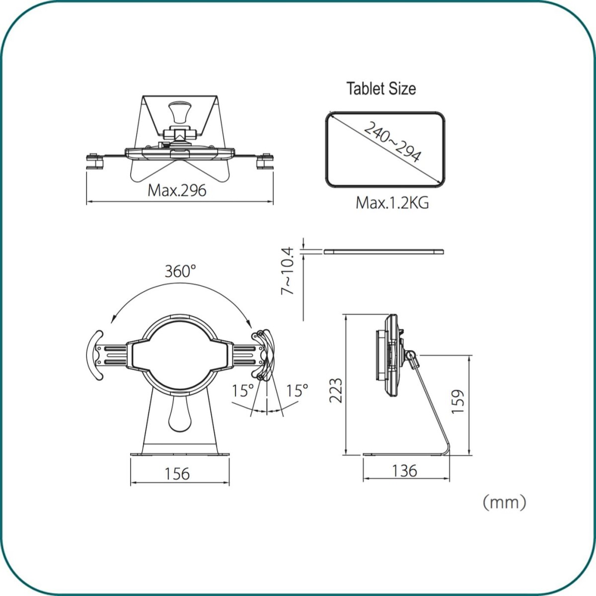 • Tablet Loading Capacity: 1.2kg /2.6 lbs