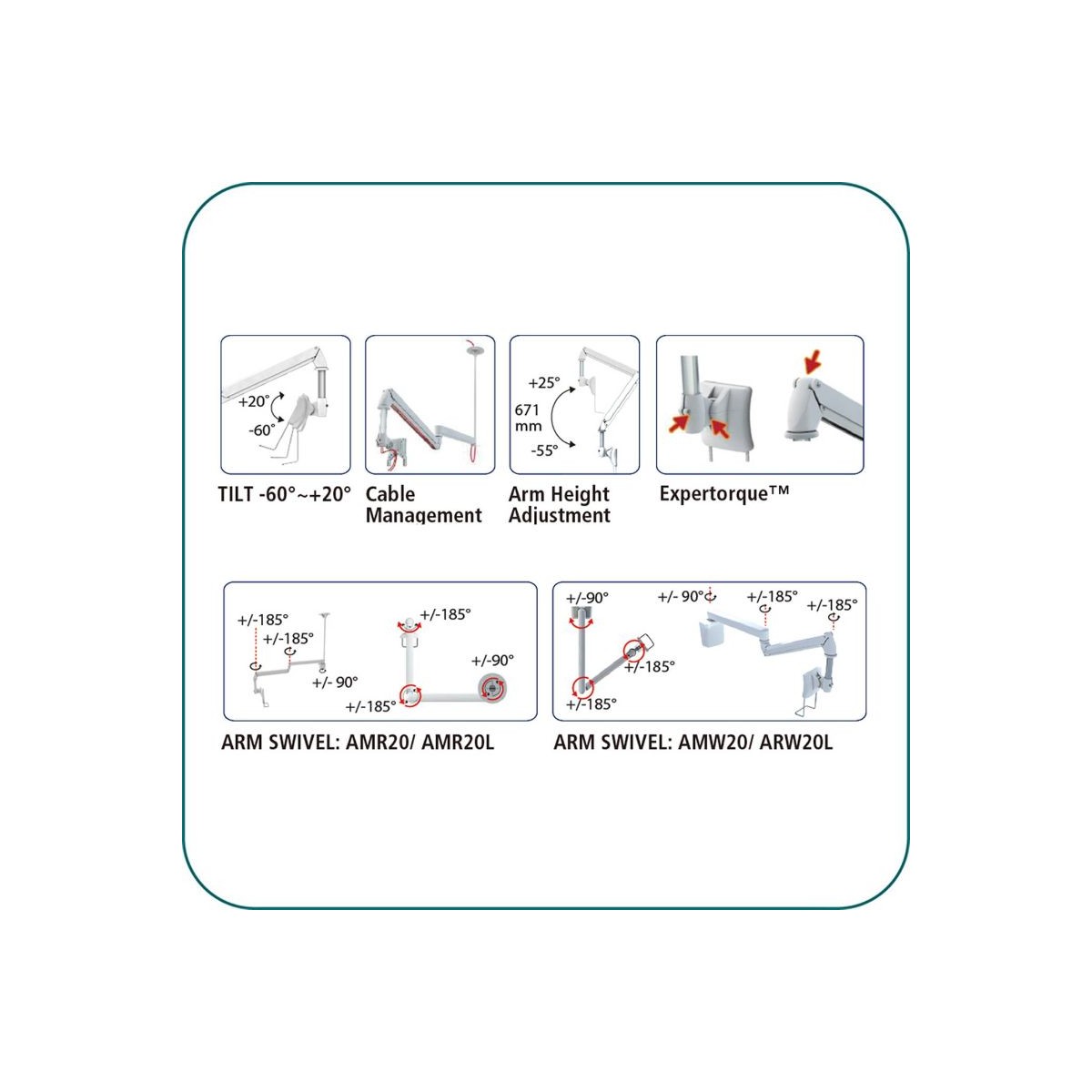• ExperTorque™ design for easy adjustment hinged by display weight