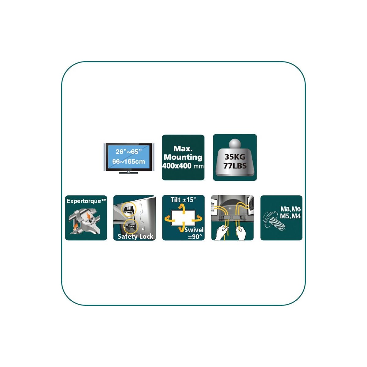 • Flat Panel Size:26~65 inch/ 66~165cm