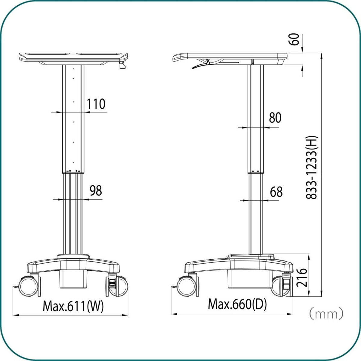 Suitable for Healthcare, Workstation, Medical Care and wherever needs mobility of equipment in your working space.