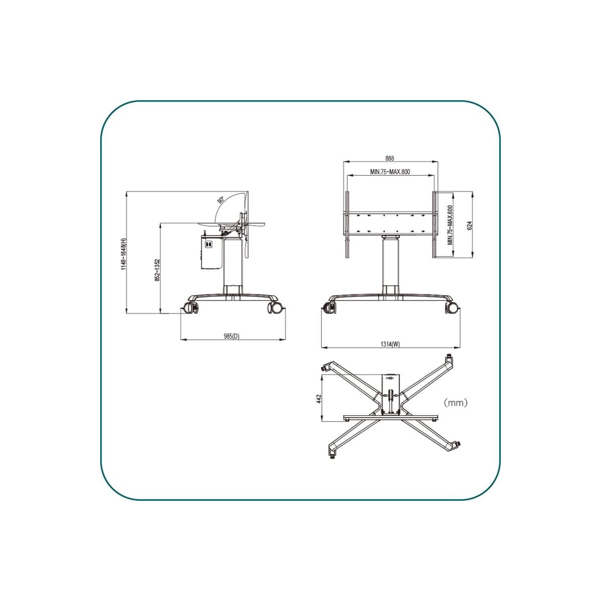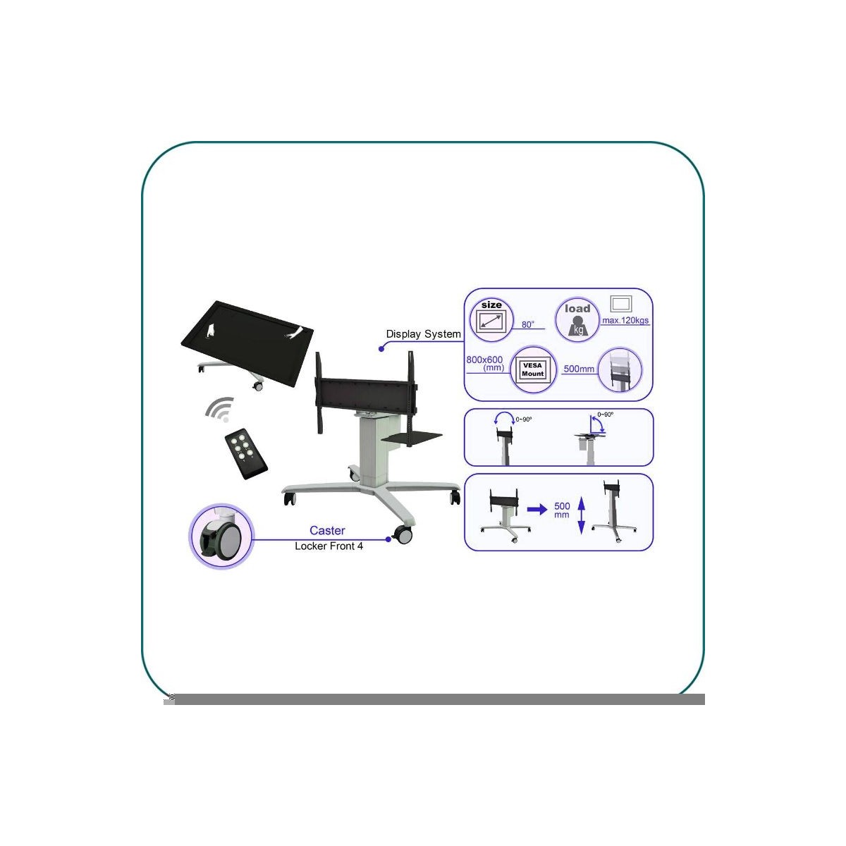 Product code:Aavara is pround to present the Motorized Interactive White Board / Touch Desk Trolley Cart series. It is a state-of-the-art and stylish design for TV Cart to surpass the traditional ironed cart. It equipped with larger display mount up to 82 inch with Max. Mounting 800x600mm and easy Motorized Lift/Tilt w/ RF Remote Control.
