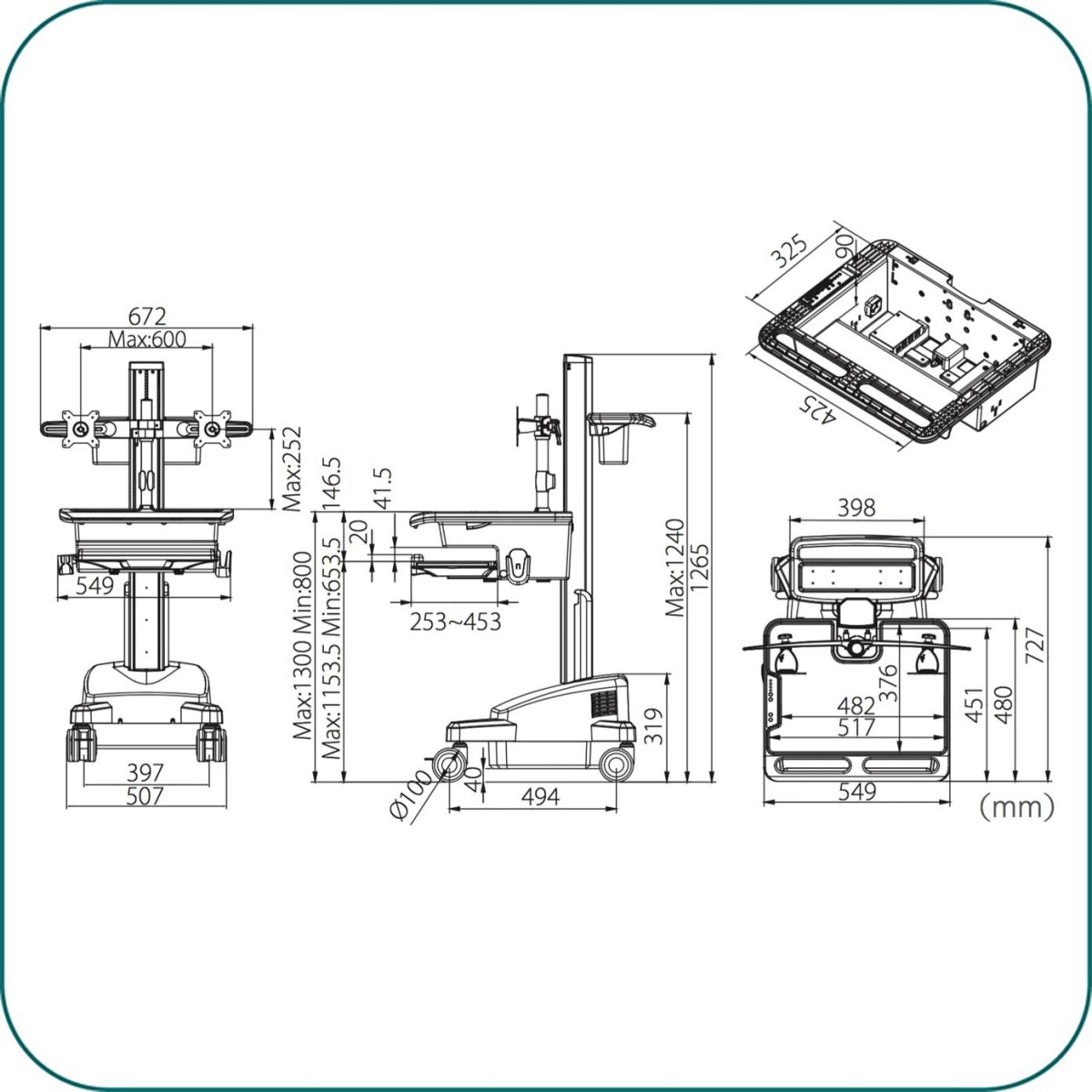 Suitable for Healthcare, Workstation, Medical Care and wherever needs mobility of powered equipment in your working space.