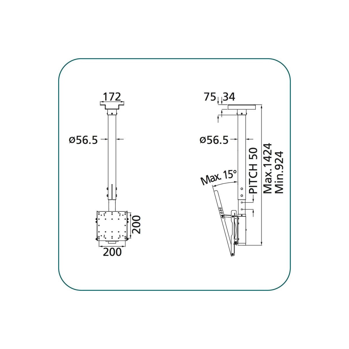 • Ceiling Tube length: 924~1,424mm in 50mm increments