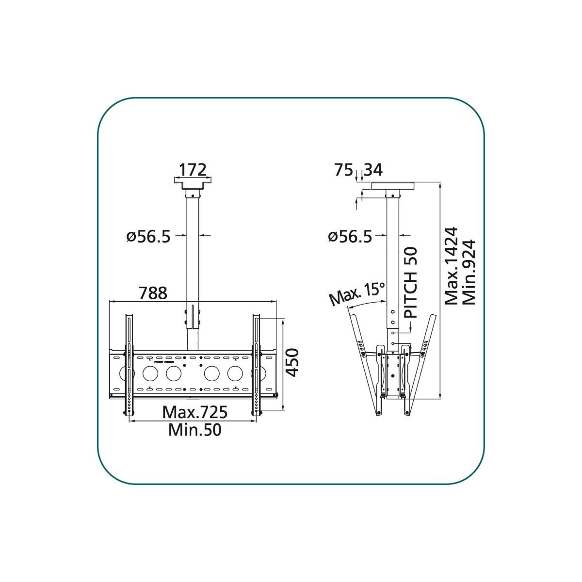 • Max. Mounting: 725x450mm