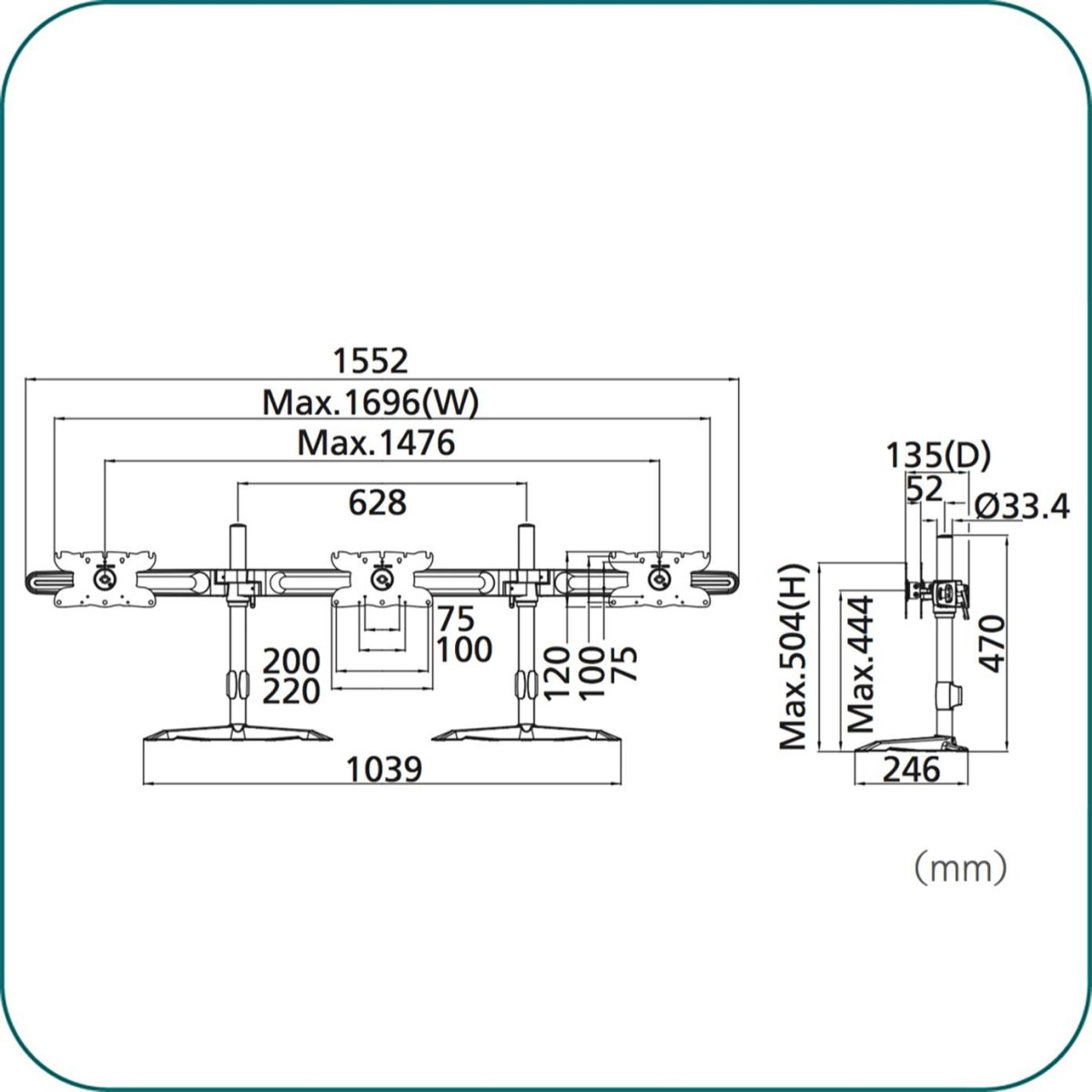 Product code:Aavara new design DS310 is a Triple LED/LCD Monitor stand, featuring a wide angle of -10~ +15 degree Tilt, +/-15 degree swivel and a 360 degree rotation. It supports VESA 200x100/100x100mm display and ExperTorque™ technology enables adjustment of the screens hinged by its weight.