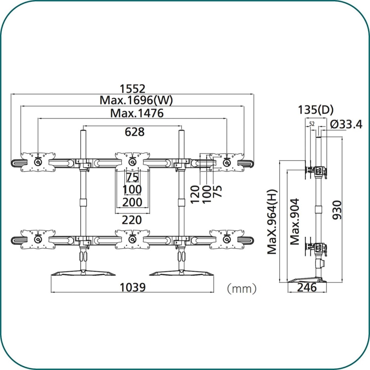 • Loading Capacity: 8kg/ 17.6lbs for each display