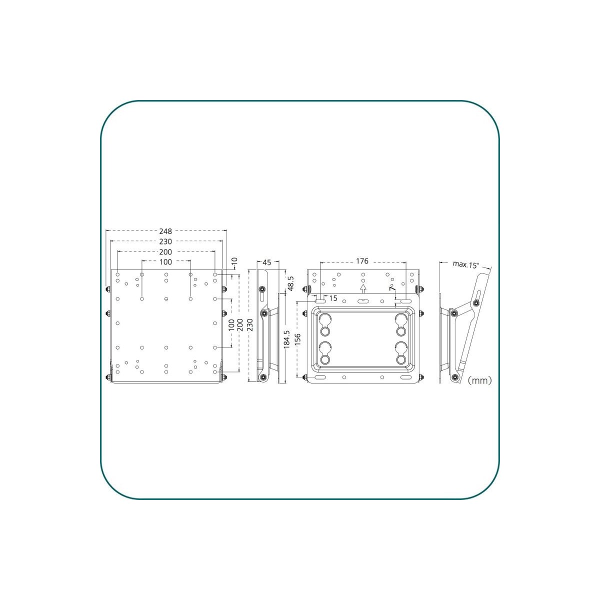 • Tilt Angle: 0°-15° free angle