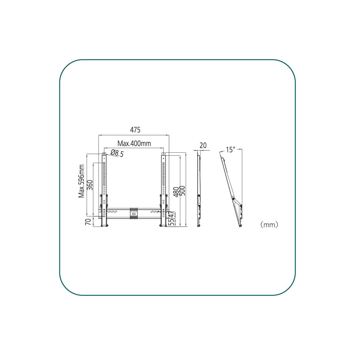 It supports 26~52 inch displays with VESA mounting pattern 400x400mm. Tilt 0°~15° angle and comes with safety Lock to secure displays in place at home or outdoors. Distance to wall only 0.78 inch to fit the stylish home decor.