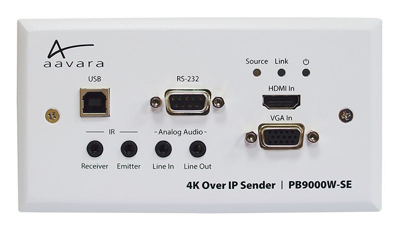 Product code:PB9000W-SE is a great 4K video distribution wall plate sender solution for commercial AV deploy which required in-wall transmitter, integrating Web-based Aavara AV Master Control Software and 3rd Party Control integration for working with PB9000 standard senders and receivers.