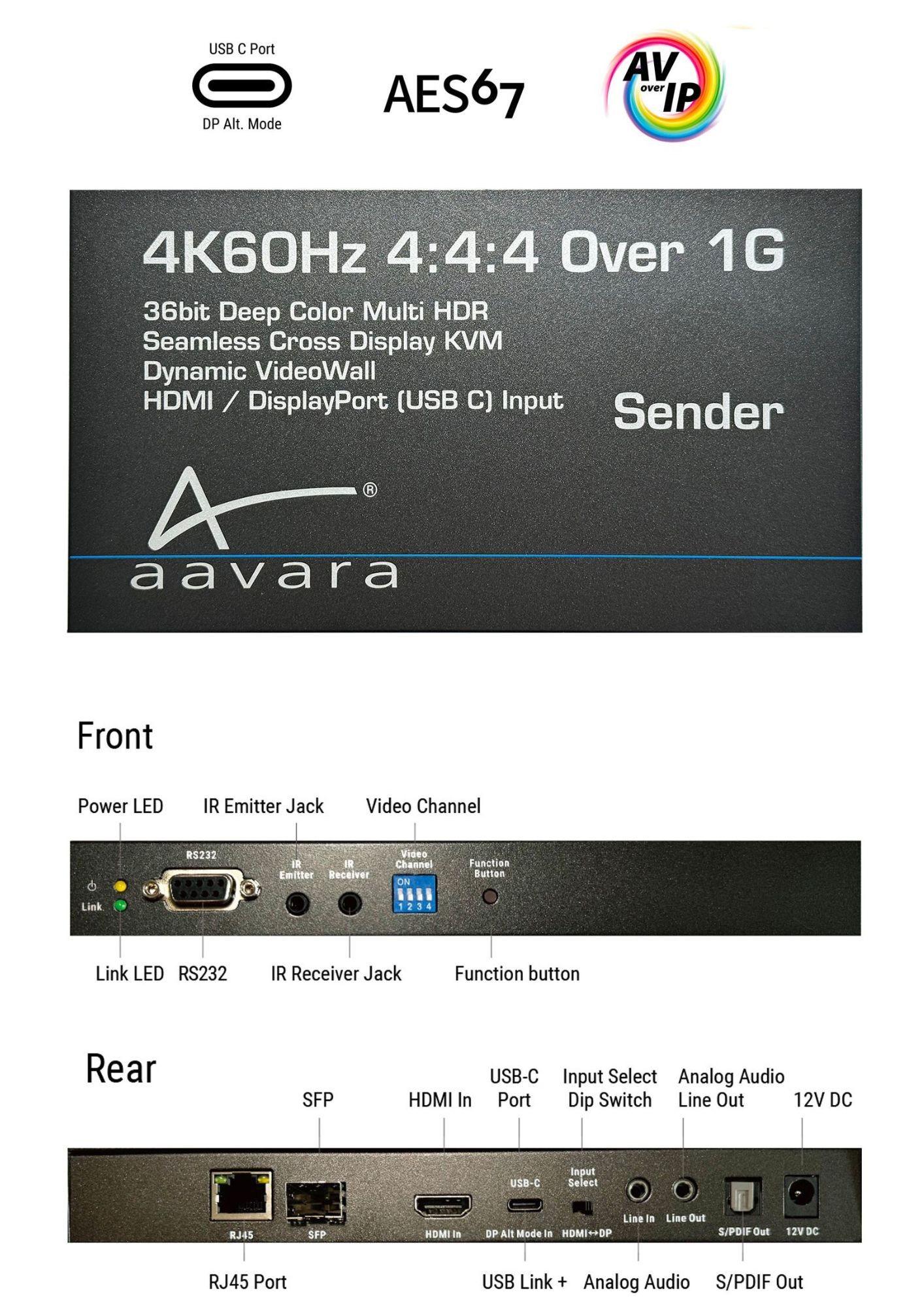 Aavara PB9700-SE 4K60Hz 4:4:4 Over IP Sender with HDMI/DisplayPort(USB-C DP Alt. Mode)