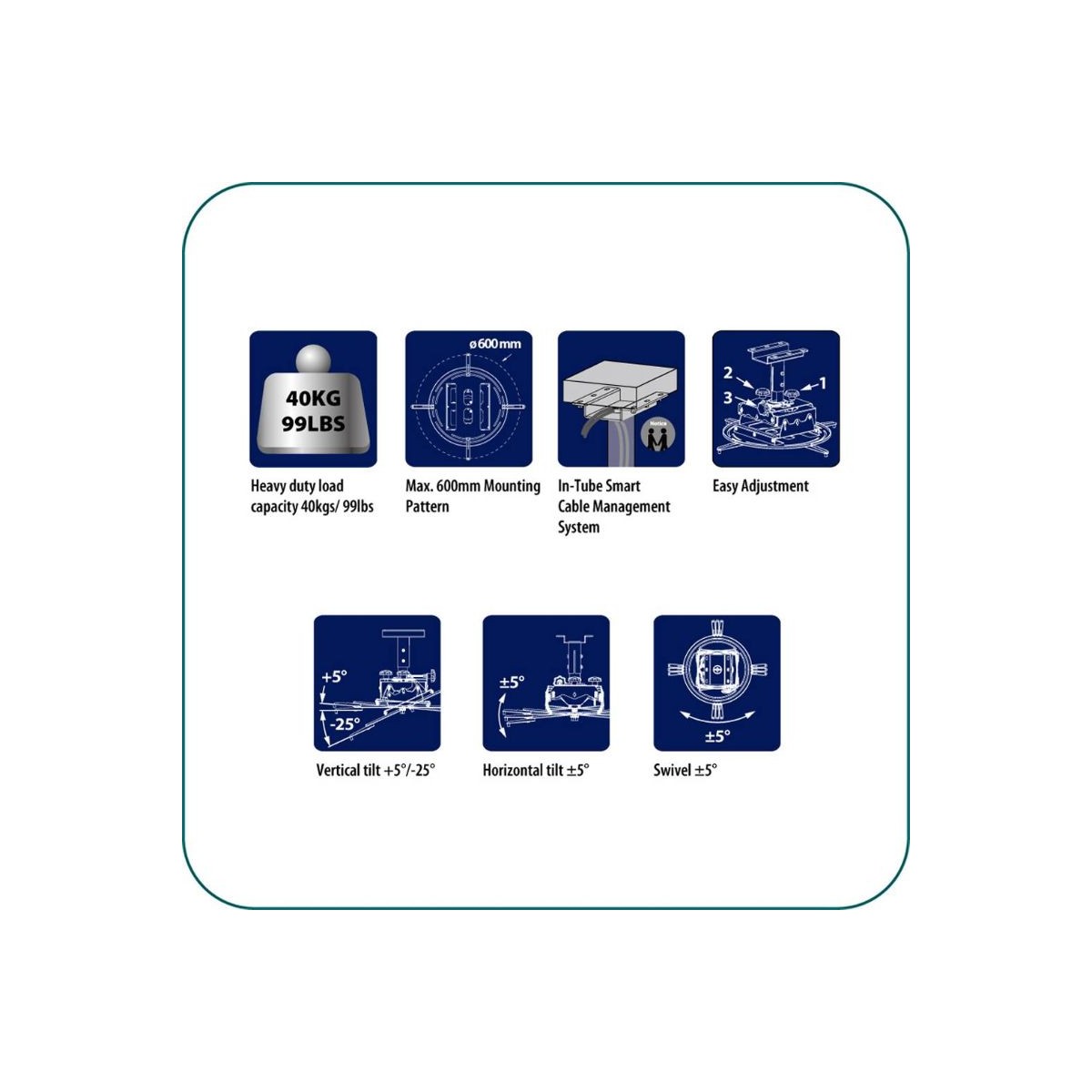 It features a heavy load capacity up to 40kgs/ 88lbs and comes with smart In-Tube Cable management system which fulfills the commercial installation demand, tiny and professional.