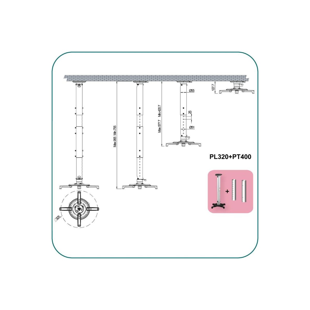 Product code: Aavara PT400 is an extended tube for PL320. It gives a flexibility in extension of your projector ceiling mount length max. up to 955mm to fully fulfill the special project installation demand. Easy to install.