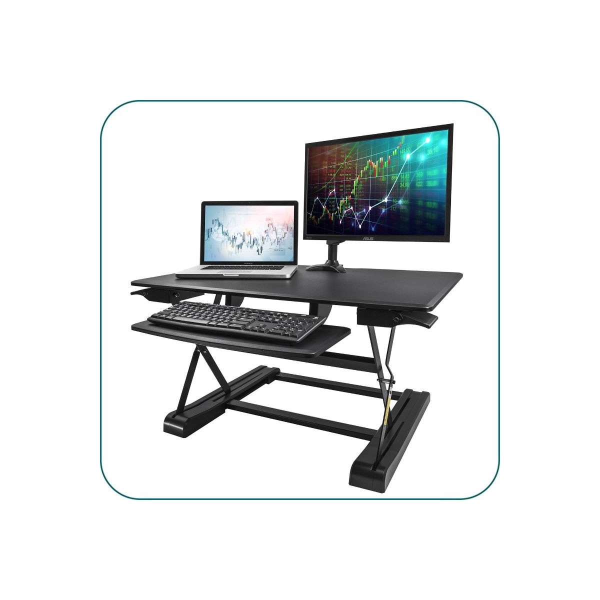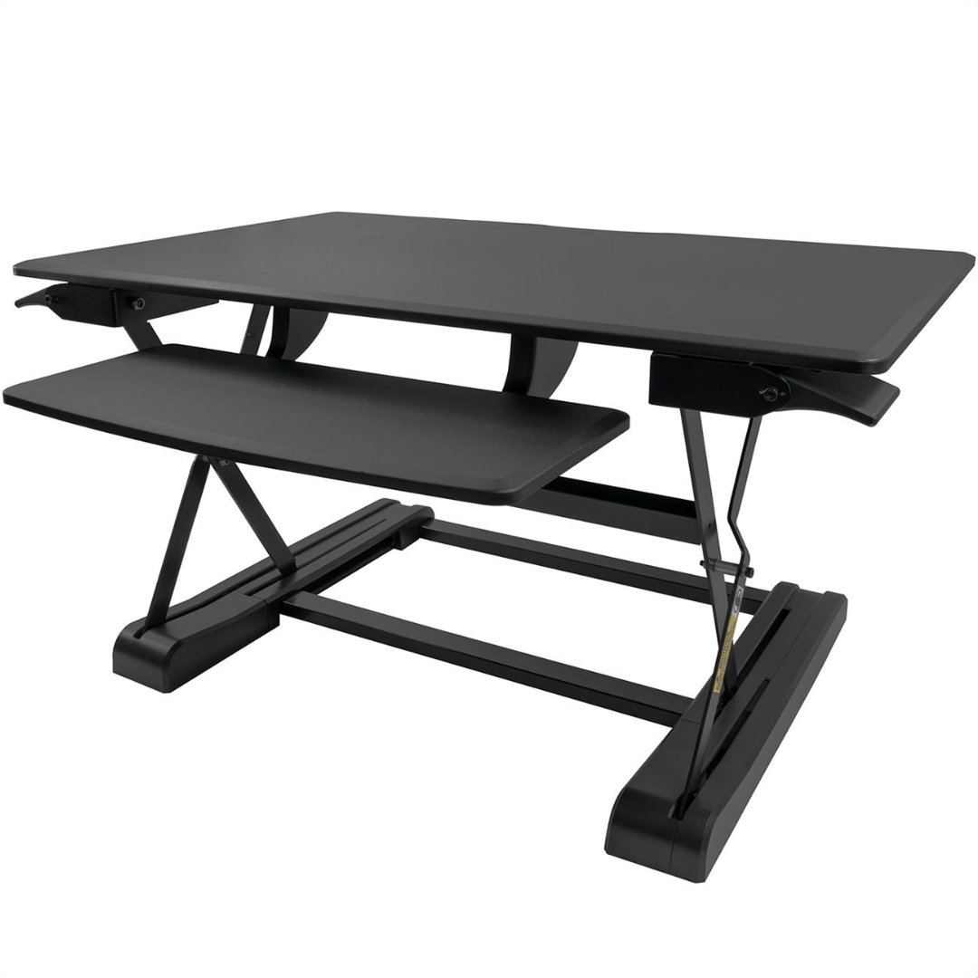 • Sit-Stand Desk Riser Workstation with Easy Height Adjustment.