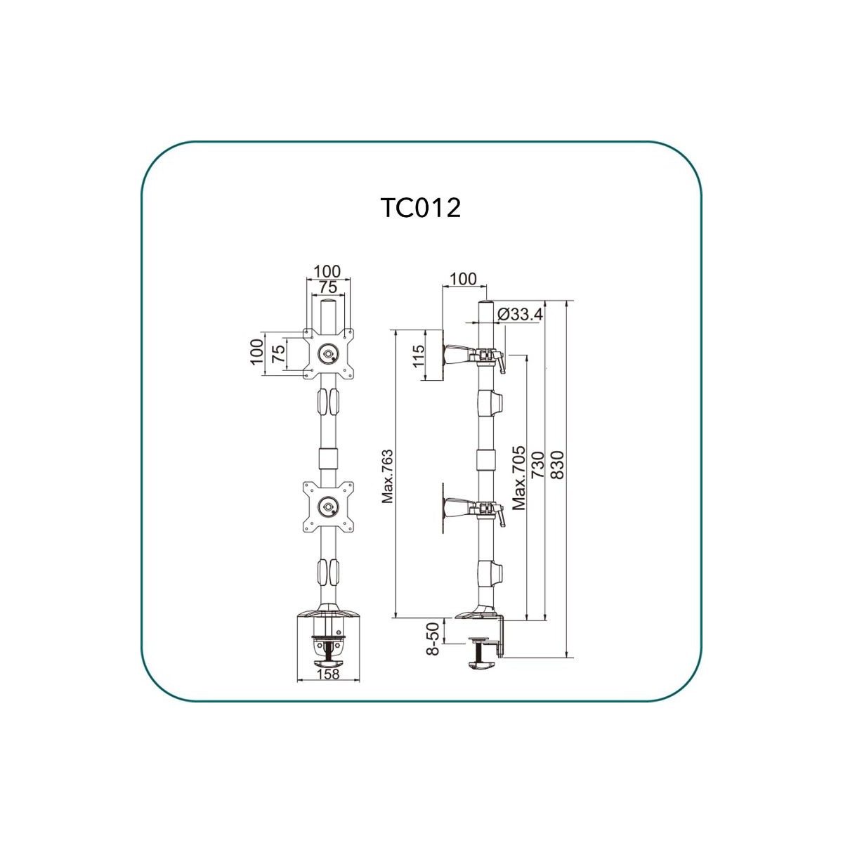 Product code:Aavara TC012 is an Extended Dual LED/LCD Monitor clamp base stand, featuring a wide angle of +/- 20 degree Tilt, swivel and a 360 degree rotation. It supports VESA 100x100/75x75mm display and ExperTorque™ technology enables adjustment of the screens hinged by its weight.