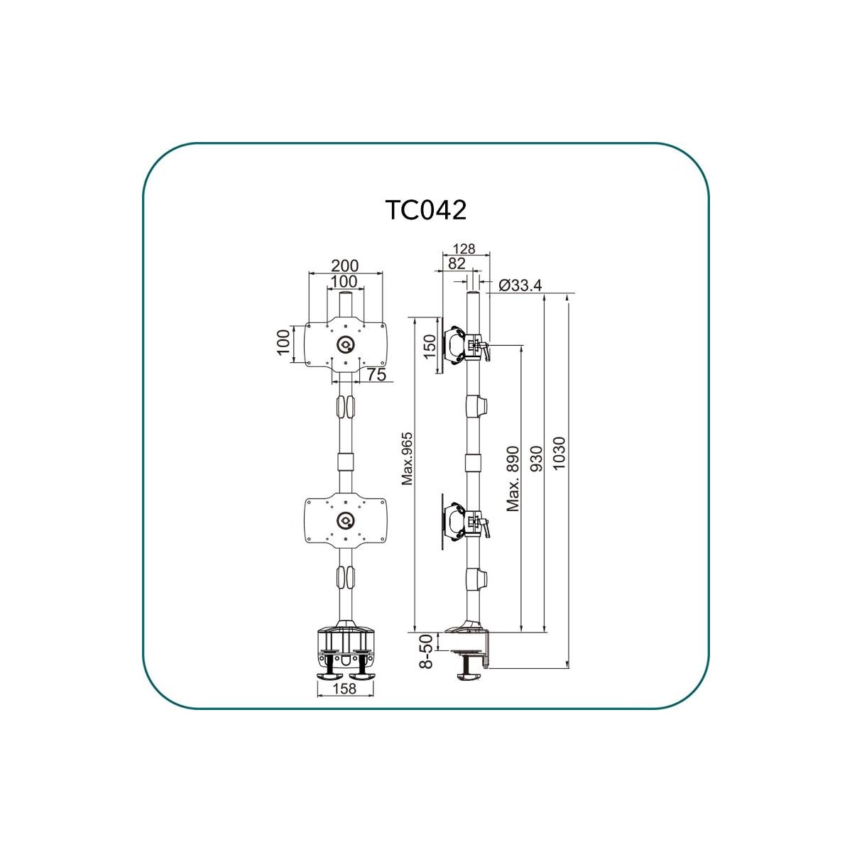 Product code:Aavara TC042 is an Extended Dual LED/LCD Monitor clamp base stand, featuring a wide angle of +/- 15 degree Tilt, swivel and a 360 degree rotation. It supports VESA 200x100/100x100mm display and ExperTorque™ technology enables adjustment of the screens hinged by its weight.