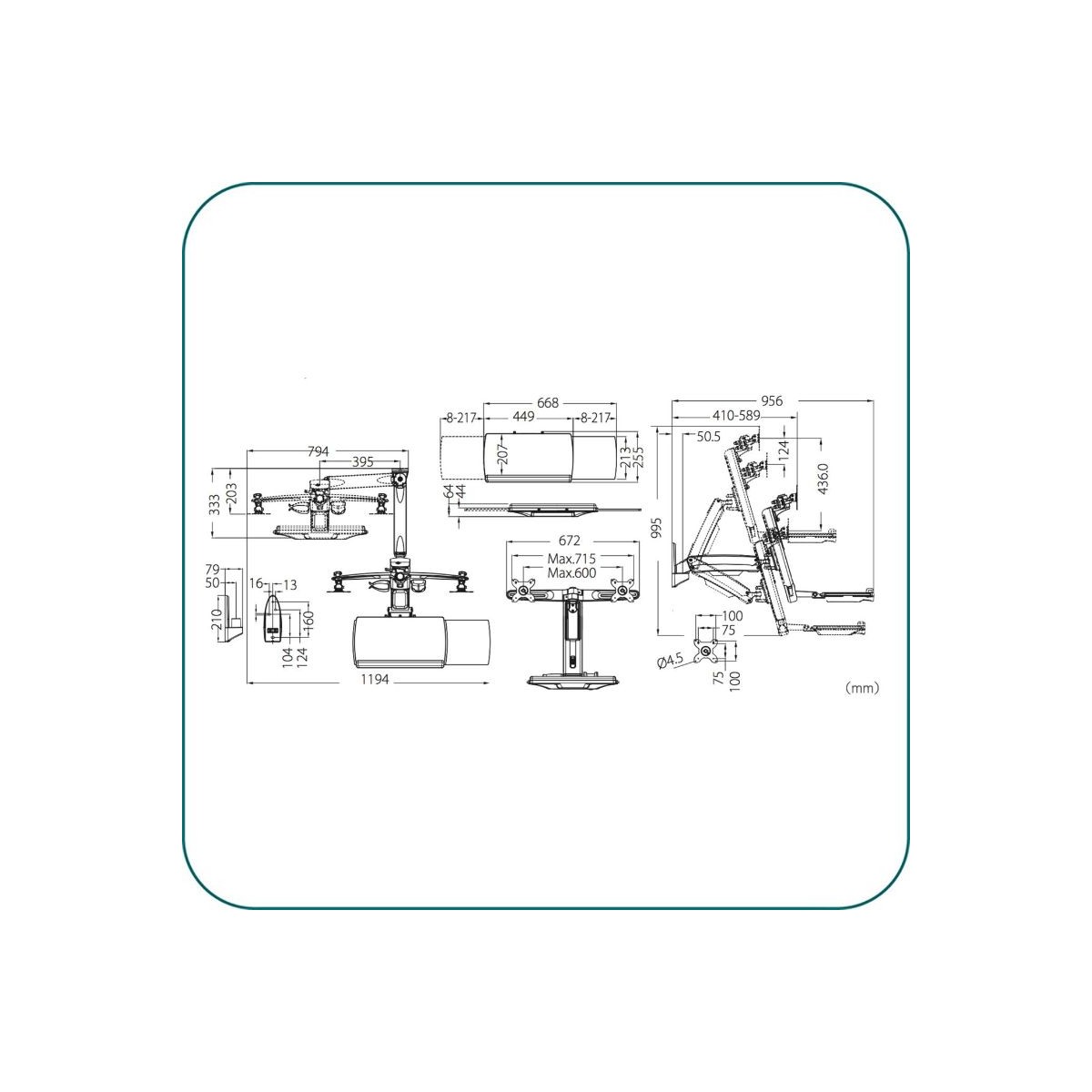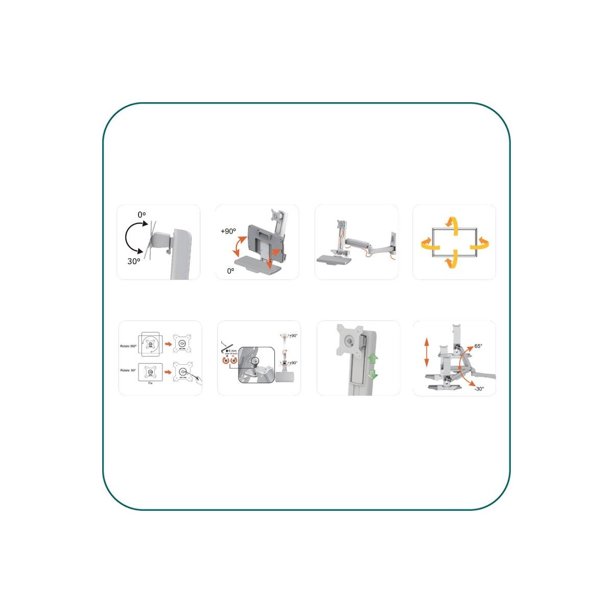 Features Arm tilt -30° ~ +65°, swivel +/- 90°, rotation 360° of the display and height adjustment range up to 436mm/ 17.27"