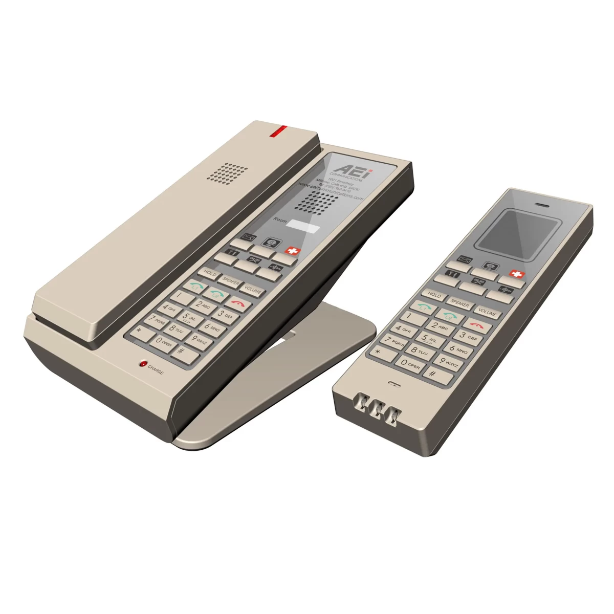 • Up to six (6) programmable guest service keys on handset and base
