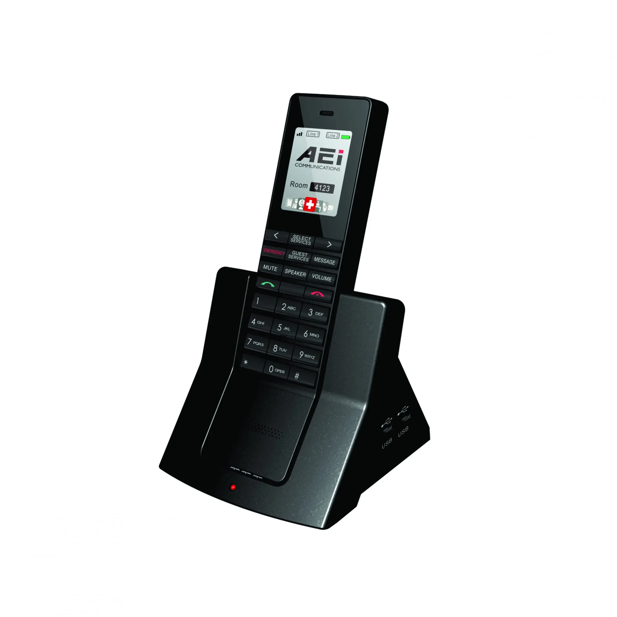 • Supports up to four DECT handsets – perfect for suites!