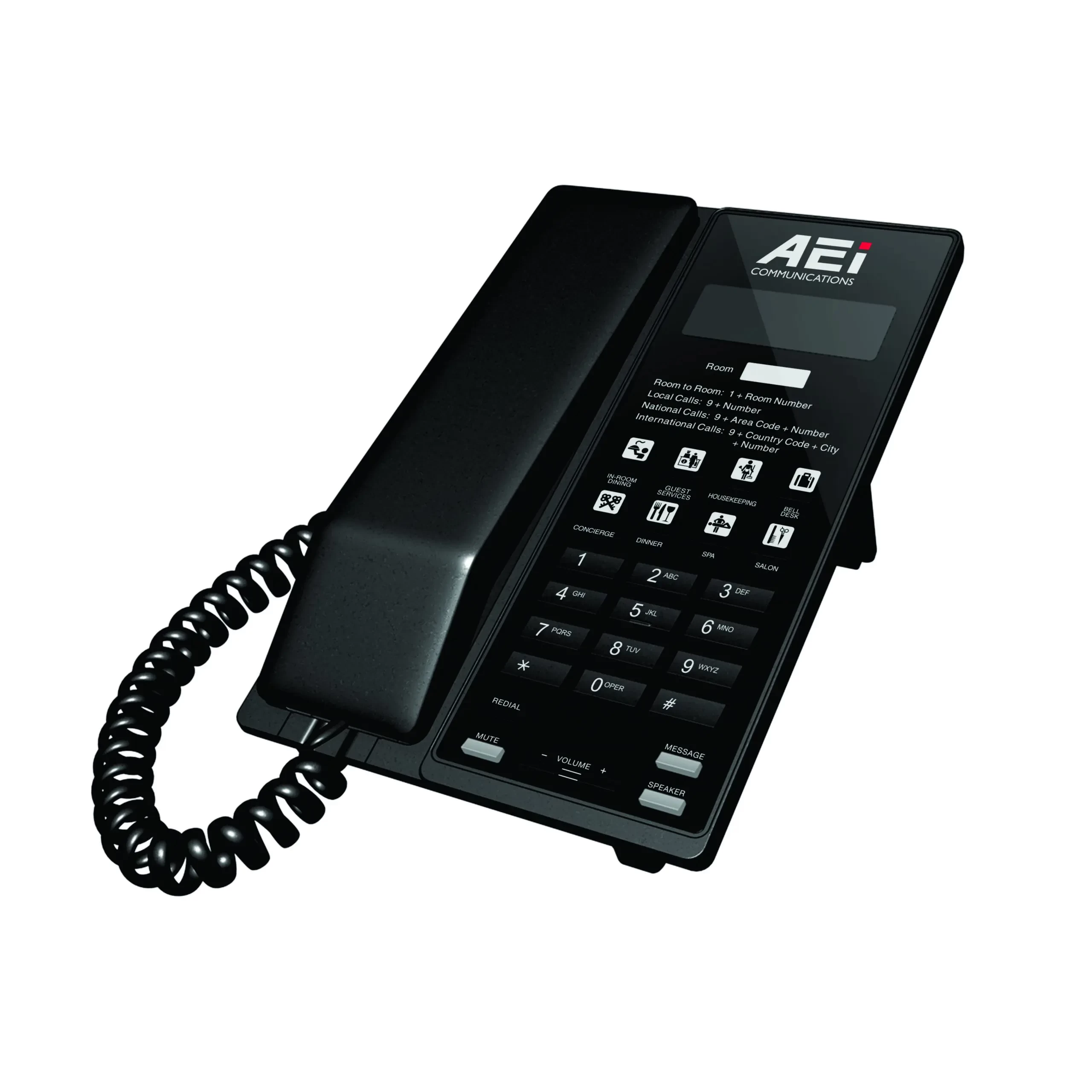 • Customizable Hotel Logo and Dialing Instructions on Faceplate