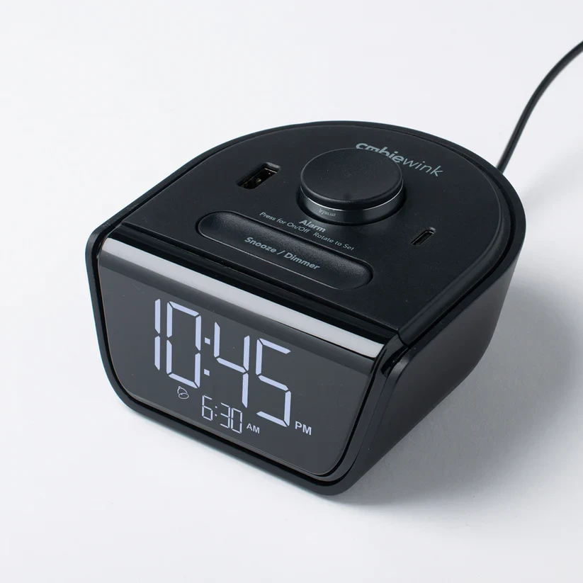 CubieWink 2.0 charging alarm clock! The wildly popular hotel clock includes USB-C! Petite in size, Wink is powerfully packed with 1 USB-C and 1 USB-A, ready to take on the task of charging your hotel guest's mobile phones and devices.