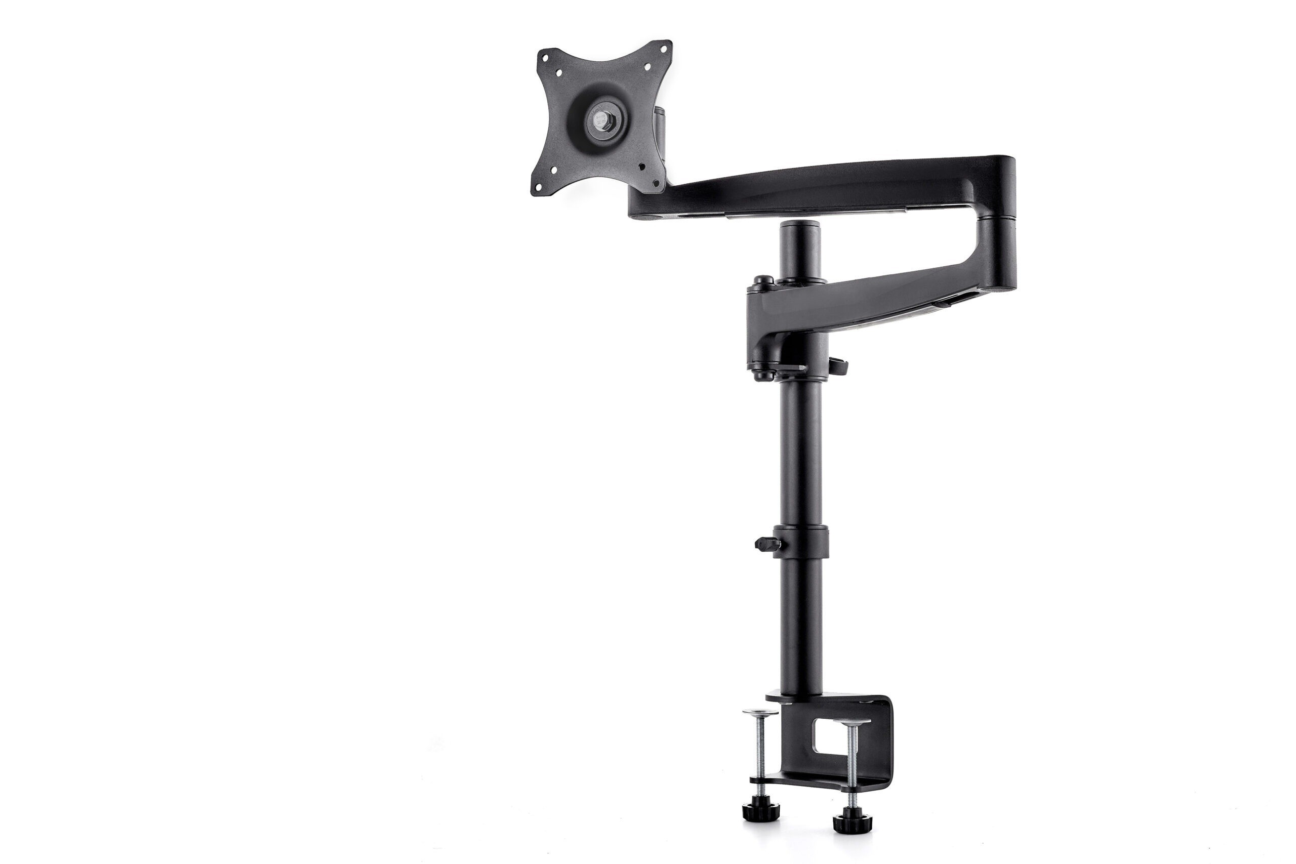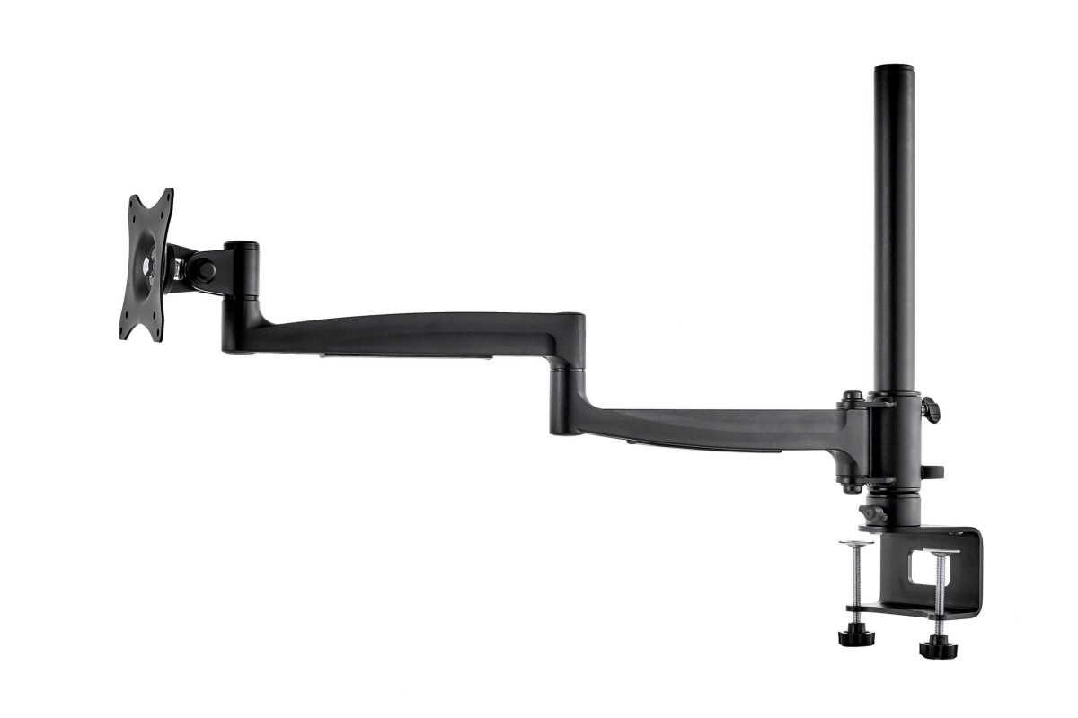 Product code:The DM101 desk mount with a double arm for 19″-27″ screens is a solution for those who value ergonomics when working with a computer. Full height adjustment combined with 360° arm rotation allows you to position the screen to suit the user’s individual needs and ensures excellent comfort during office work. Two types of desk fastenings are suitable for any installation, increasing the functionality of the mount. DM101 is a perfect choice for those performing any work with full-day use of screens, including in the industry, transport and monitoring centres. This mount is perfect for users who appreciate both functionality and aesthetics of design.