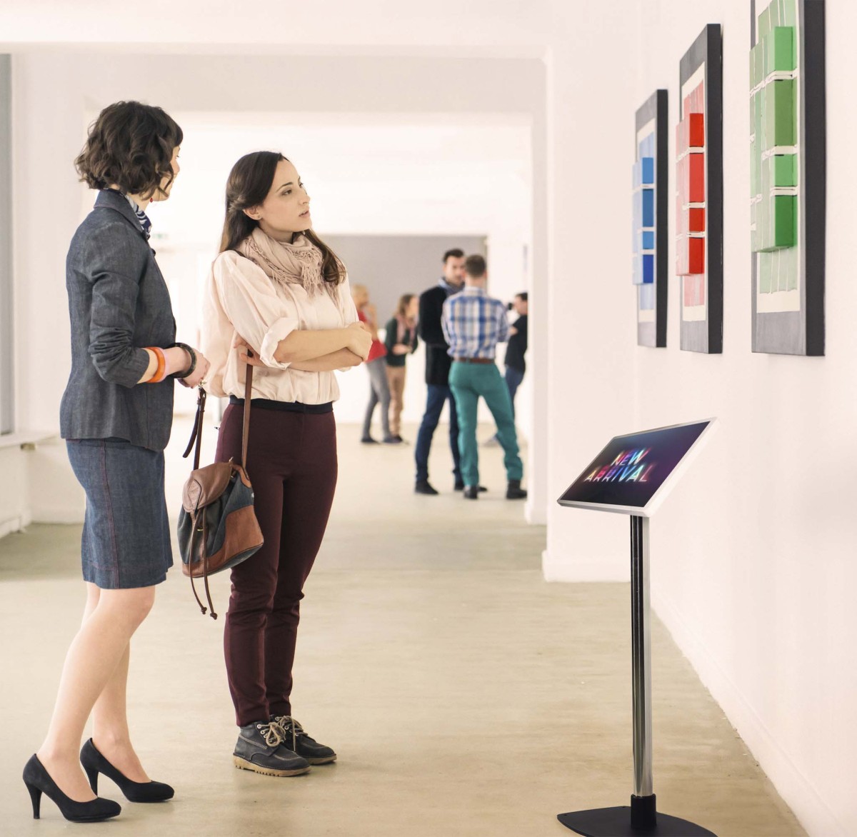 Product code:STD04 is a simple and universal solution for mounting small screens weighing up to 15 kg. A robust, durable base made of 10 mm thick powder-coated sheet metal can be screwed to the floor for constant exhibition. Alternatively, STD04 can be used as a standalone stand without being screwed to the floor.