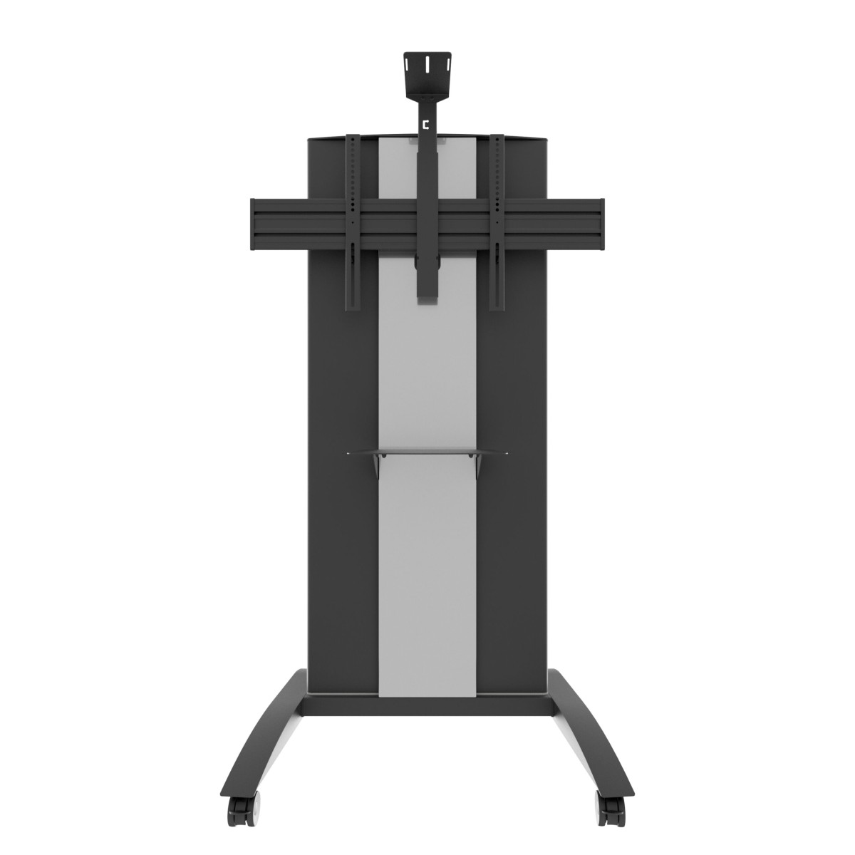Product code:VCTX170 is an excellent choice of a conference trolley for mounting a 42″-65″ screen for users looking for a practical solution that meets the highest expectations. It has been designed to provide comfort during a conference, speech, or public presentation. VCTX170 is perfect for all professional applications in conference rooms, educational facilities or at trade fair stands. Equipping the trolley with a system that protects the monitor against falling and braked castors guarantees safe use. The built-in storage compartment for AV accessories and shelves for a camera or a decoder ensure comfort of work for the most demanding customers. In addition, the integrated cable management system provides smart installation and makes the finished VCTX170 solution look very aesthetic.