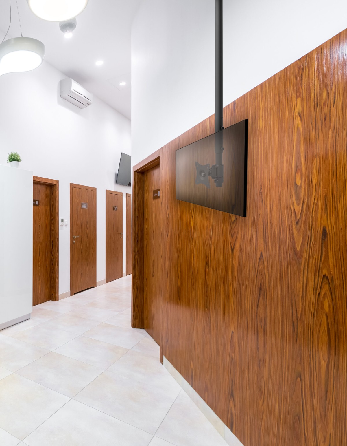 Gradual height adjustment ensures precise mounting, and an integrated cable management system allows it to guarantee the aesthetic appearance of any audiovisual installation.