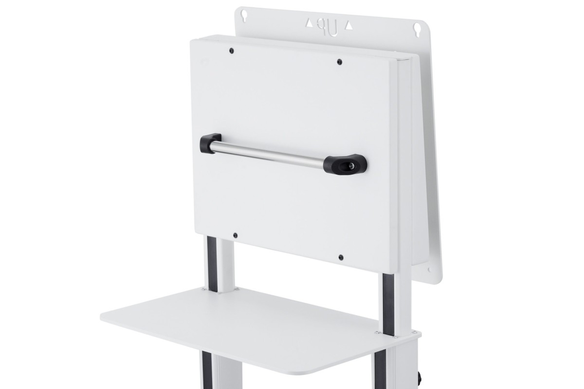 Product code:High-quality TRF100 video conference trolley designed specifically for Samsung Flip. It looks stylish and modern and also turns the Samsung Flip Display into a mobile presentation tool. The rotating head allows the digital flipchart to be rotated from vertical to horizontal and vice versa at any time. Smooth screen height adjustment ensures functionality and allows the user to adjust image to the room and the needs of the audience. With its high quality casters, the system can be easily and safely moved from room to room. Locked casters ensure safe positioning at the target location. The included shelf provides practical storage space under the Flip.