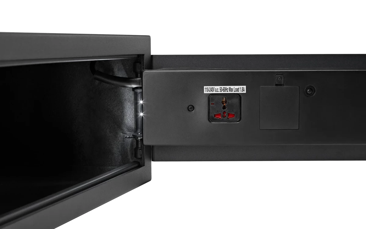 The Safe 30 Plus Smart is designed to hold laptops up to 15 inches. With internal LED light, wired keyboard, backlit display and interior mat, the safe keeps your valuables safe with a triple security system.