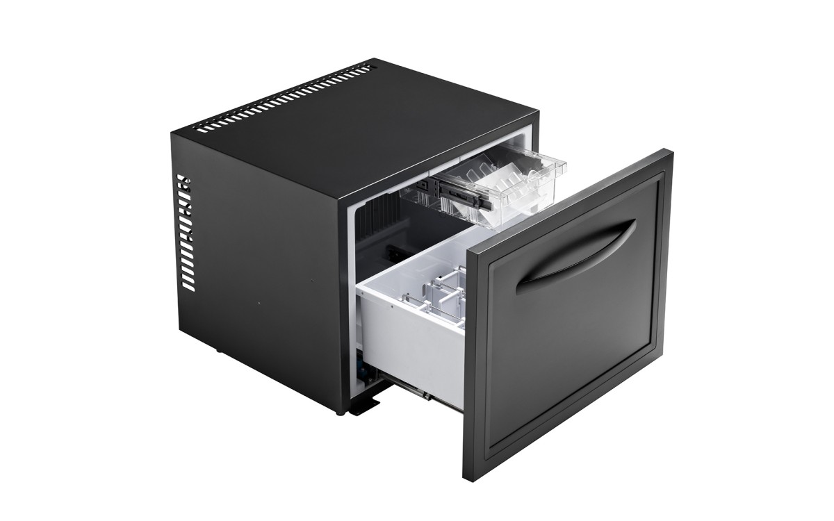 The TD50 is fitted with a drawer system for easier access to products and their organisation. With its innovative design and customisable door panelling, the minibar can be used to create a vast selection of versatile aesthetic solutions that adapt to all project design requirements.