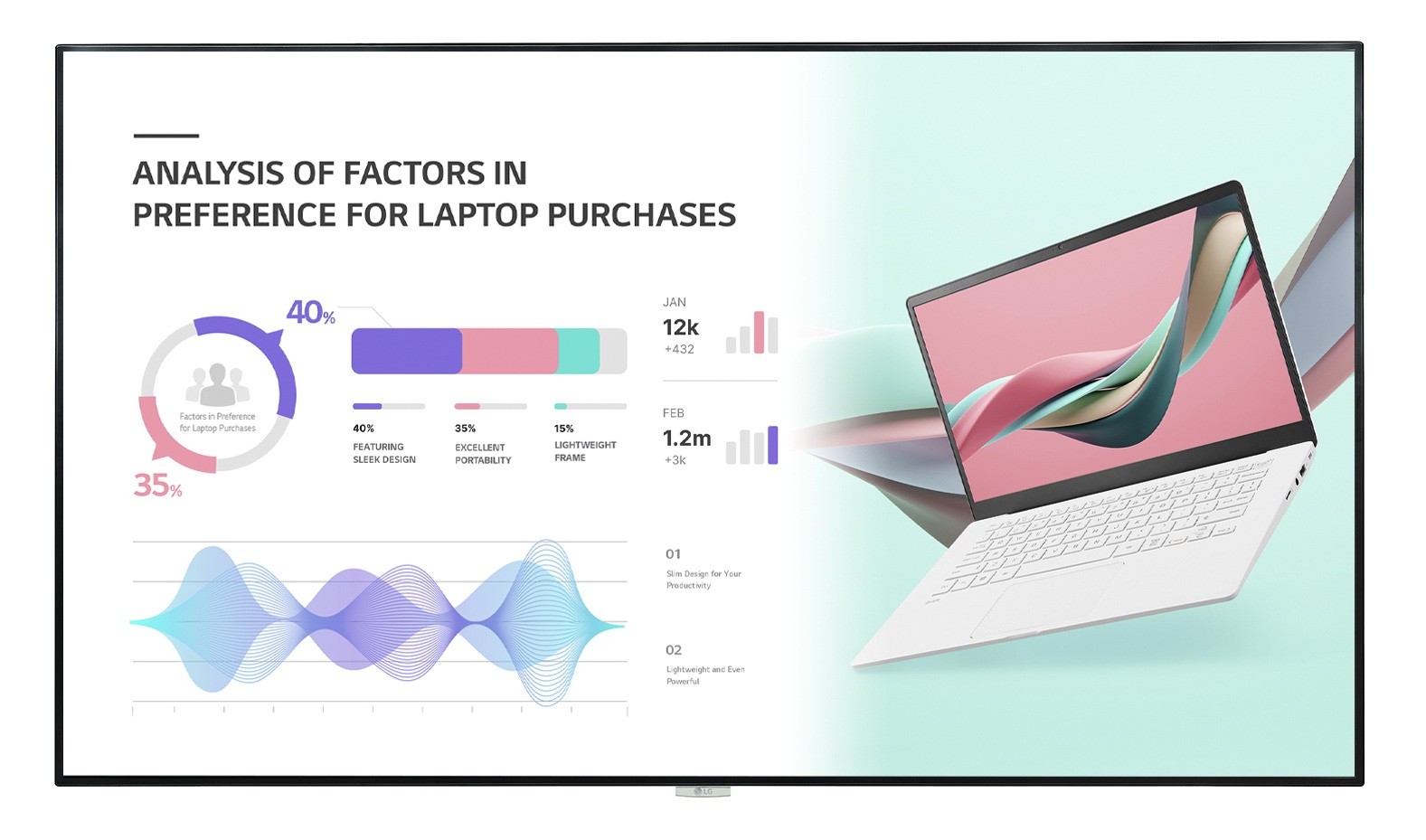 Product code:With a recommend brightness of 500 cd/m² for an indoor display, the UH5J-H series clearly deliver content and attract public attention, making it the most suitable display for marketing in meeting rooms, airports, retail, shopping malls etc.
