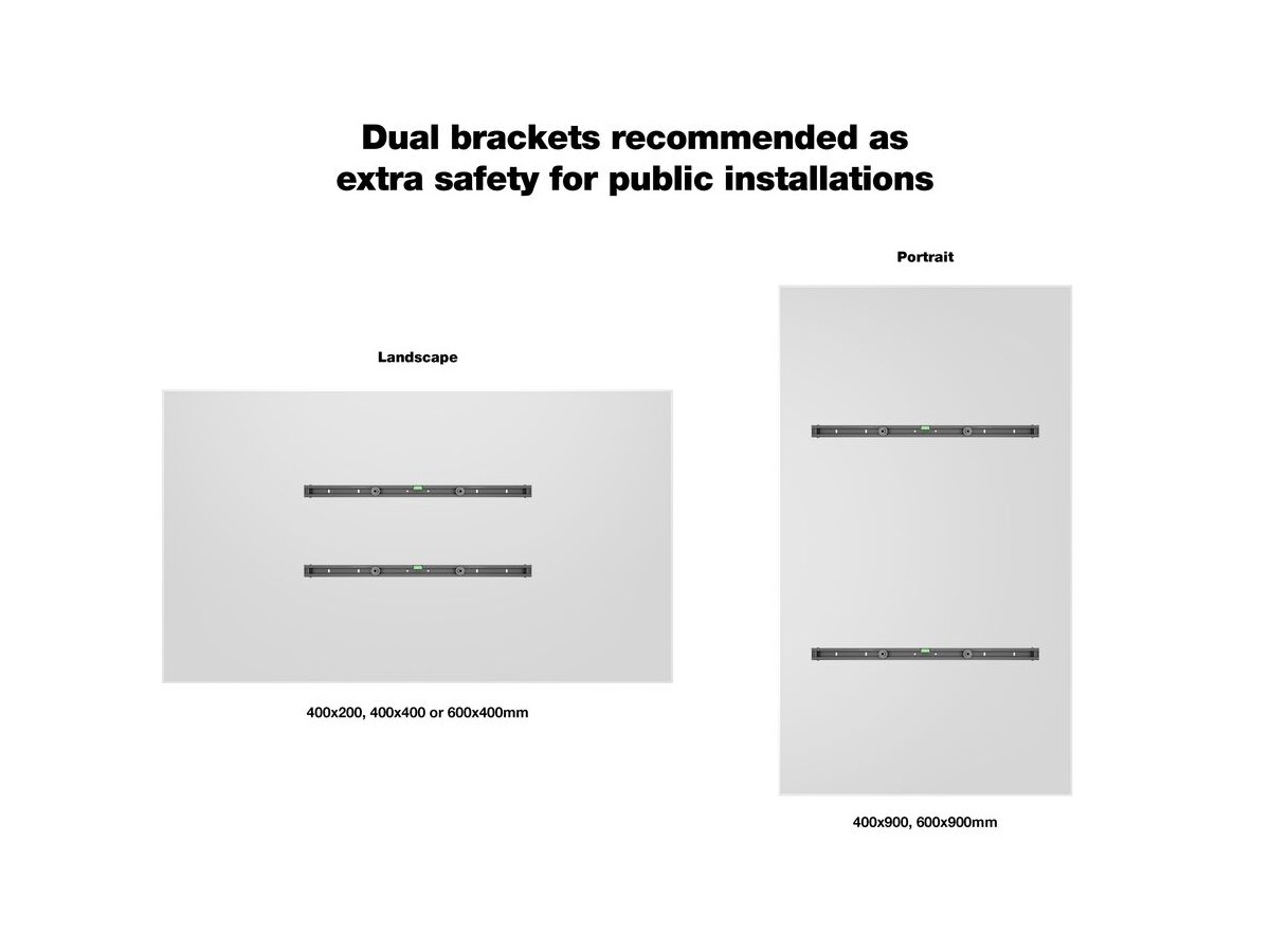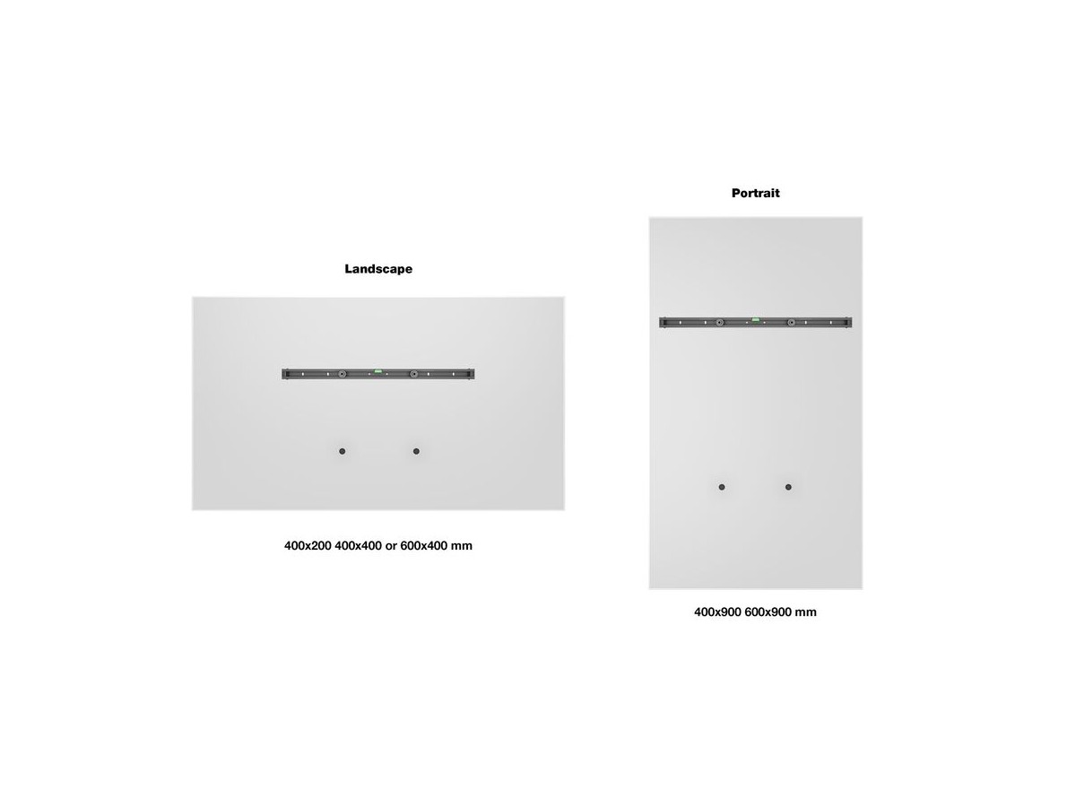 | VESA standard - Landscape mounting: | 200x200 200x300 300x200 300x300 300x400 400x200 400x300 400x400 600x400mm |