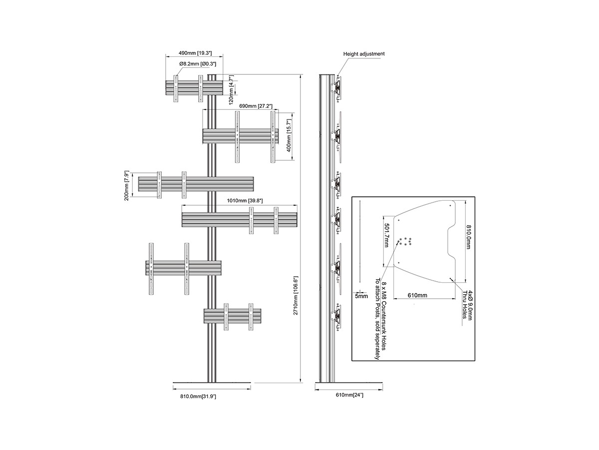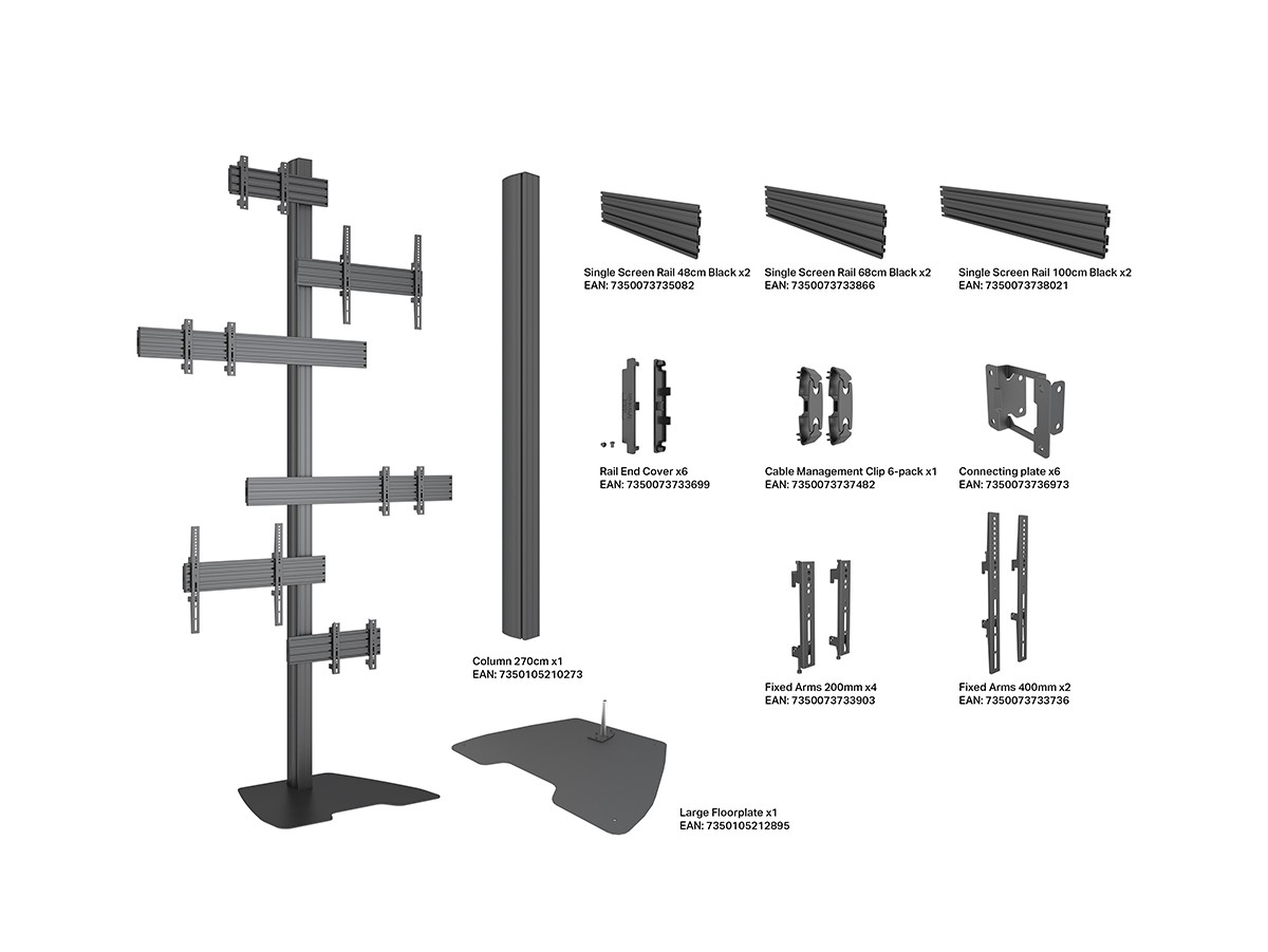 Product code:M Pro Series Video Wall Stand MBF6U Art - Floor column stand for LCD display, steel, 2.7m height, 6 screen, single side, Variuos VESA - screen size: 40"-65" - black