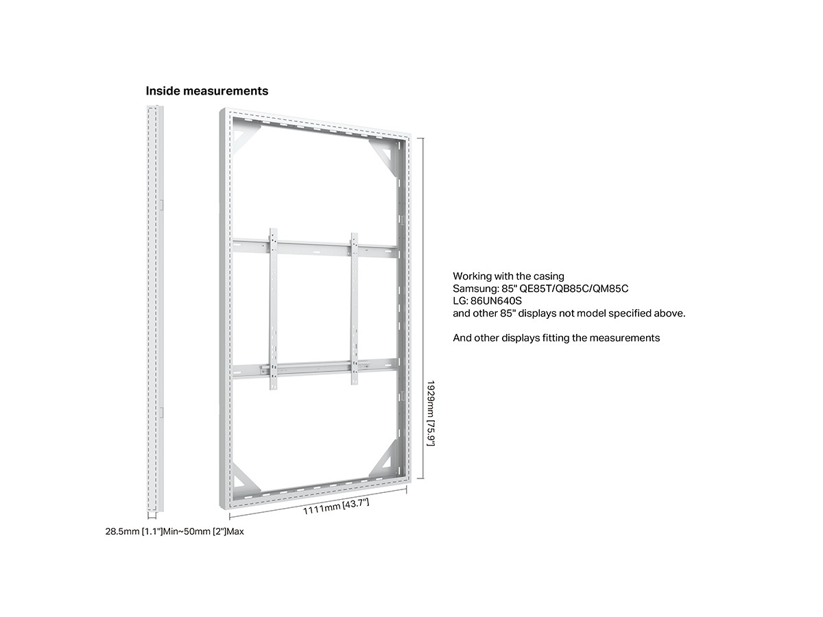 | Installation: | Samsung: 85" QE85T/ QB85C/ QM85C LG: 86UN640S |