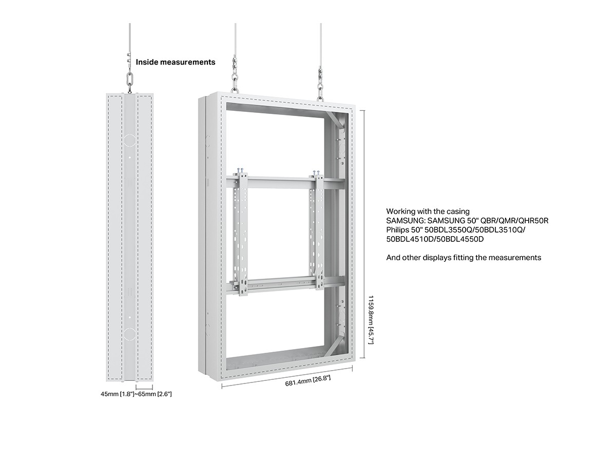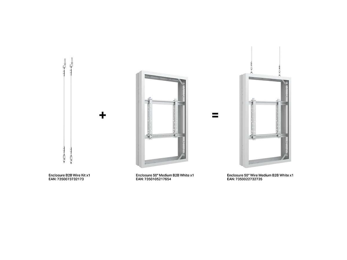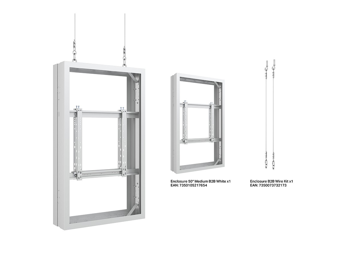 The M Pro Series Enclosure 50" Wire Medium B2B White. A well-designed casing /enclosure. Creating a minimalistic look and possible to mount in both Portrait or Landscape position this casing from Multibrackets® is one of the most versatile to date. Choose between screen sizes and colors. The casing includes after adjustment possibilities and can be used for most brands of signage displays on the market. With a smart thermal management, this solution can fit more brands as well as creating thermal management second to none.