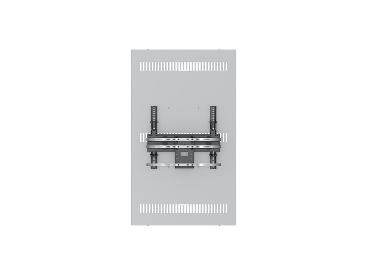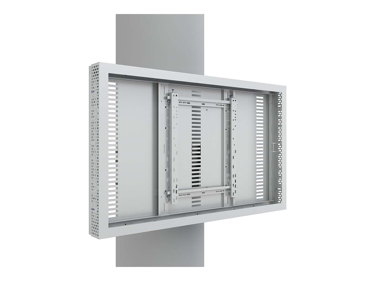 This clean styled product brings new flexibility to the digital signage enclosure market while maintaining a sleek aesthetic to complement a variety of environments and different diameters of columns. A depth-adjustable exterior frame allows for a variety of displays to be used. Reversible hinges help avoid installation and service obstructions, and the exclusive design. Depth-adjustable exterior frame. Unparalleled service and maintenance access. Integrated passive cooling vents with active thermal management options. Designed to compensate for uneven walls, keeping front of frame flat. Tamperproof security hardware protects technology investments. Tool-free on-wall storage with Middle Atlantic's Lever Lock technology.