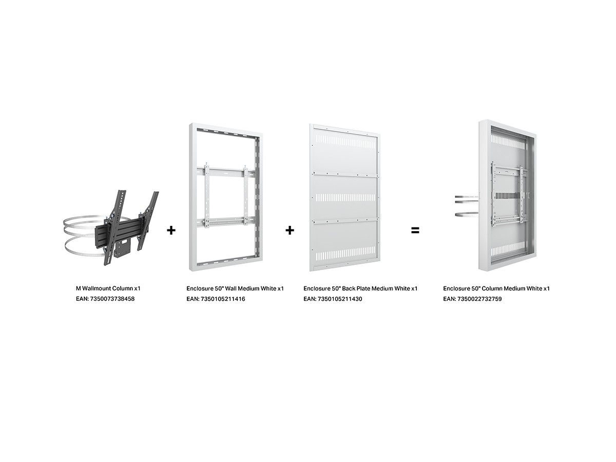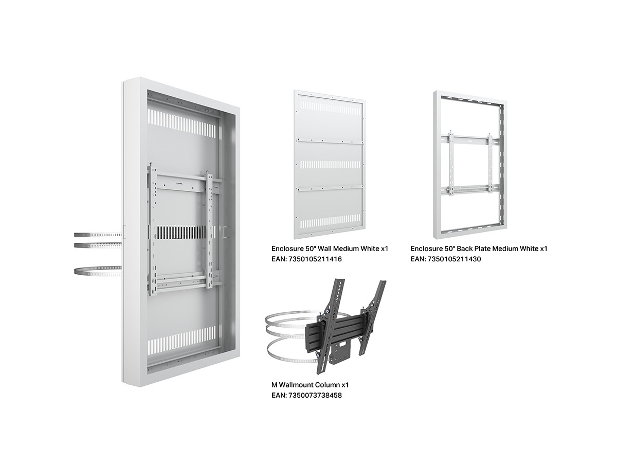 The M Pro Series Enclosure 50" Column Medium White. A well-designed casing /enclosure. Creating a minimalistic look and possible to mount in both Portrait or Landscape position this casing from Multibrackets® is one of the most versatile to date. Choose between screen sizes and colors. The casing includes after adjustment possibilities and can be used for most brands of signage displays on the market. With a smart thermal management, this solution can fit more brands as well as creating thermal management second to none.
