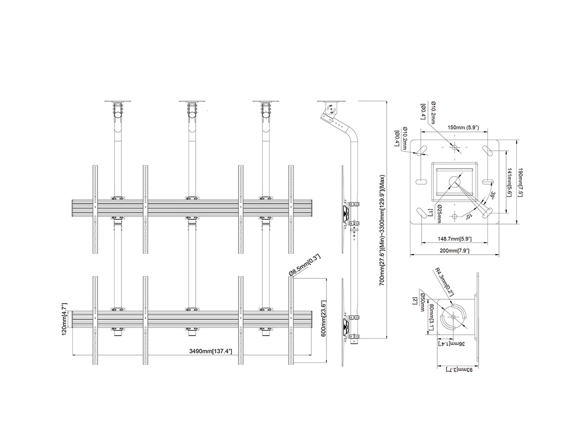 - Large size 4x Ceilingmount solution with Gravity Center