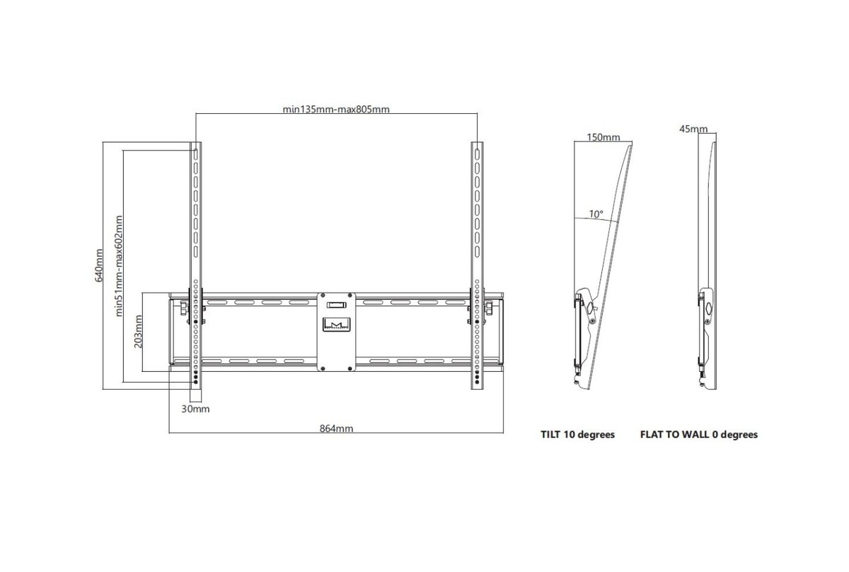 | Universal & VESA standard: | 200x200 200x300 300x200 300x300 400x200 400x300 400x400 400x600 600x400 700x400 800x400 800x600 mm |