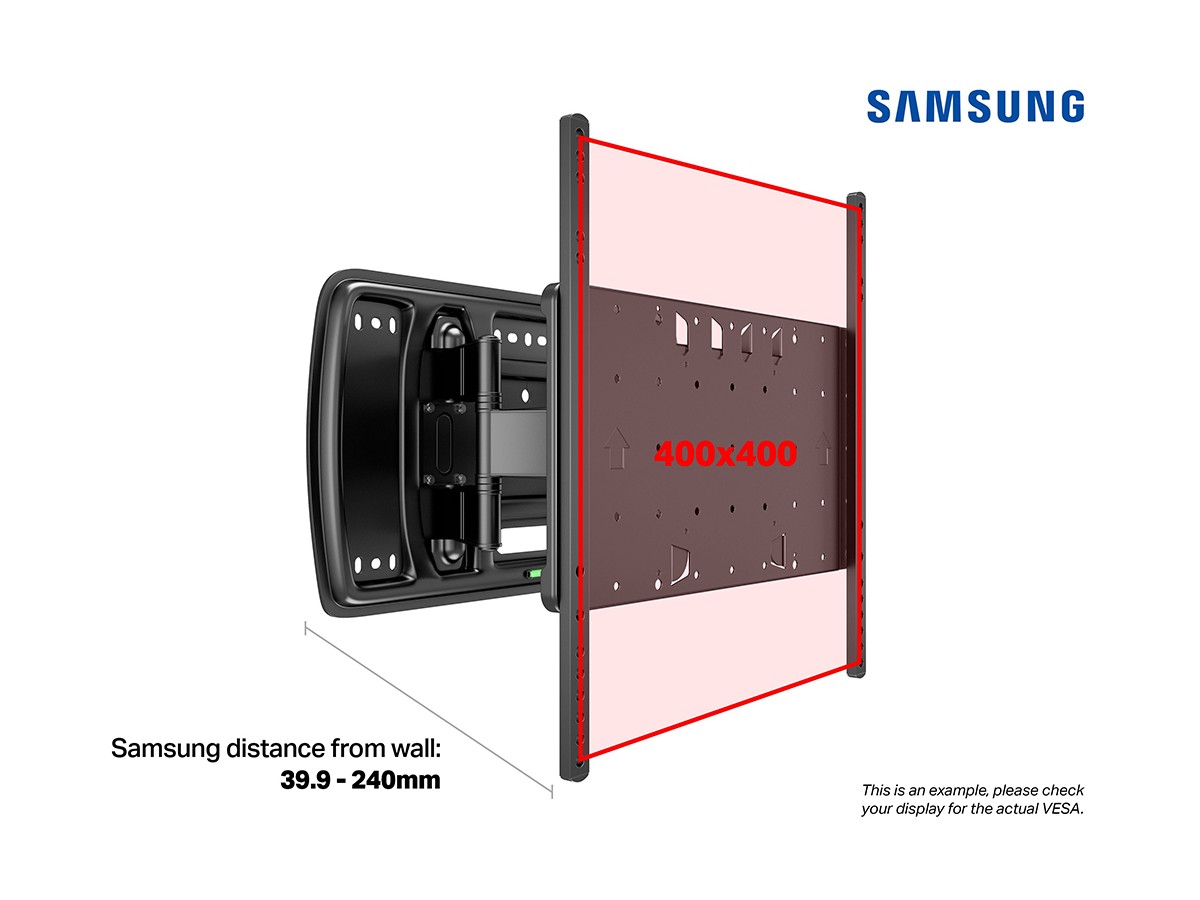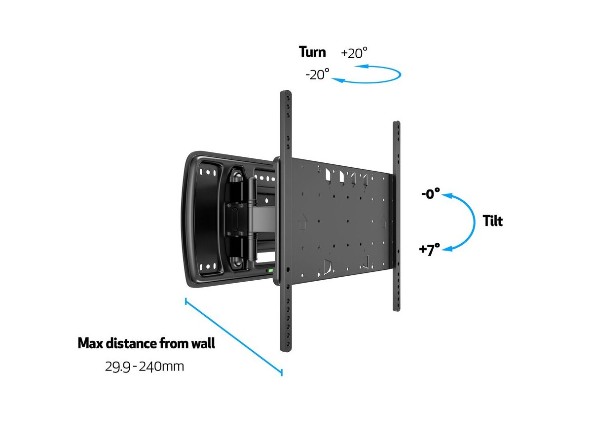 M VESA Super Slim Tilt & Turn is suitable for a wide range of screens sized 32" and up to 65". The VESA standards that are supported by this mount is 100 / 200 / 300 and up to 400 mm. If needed, the wall mount can be combined with an optional VESA extender kit which enables the 600x400 mm VESA standard. This means that M VESA Super Slim Tilt & Turn is suitable for most of the VESA standards including the rare ones.