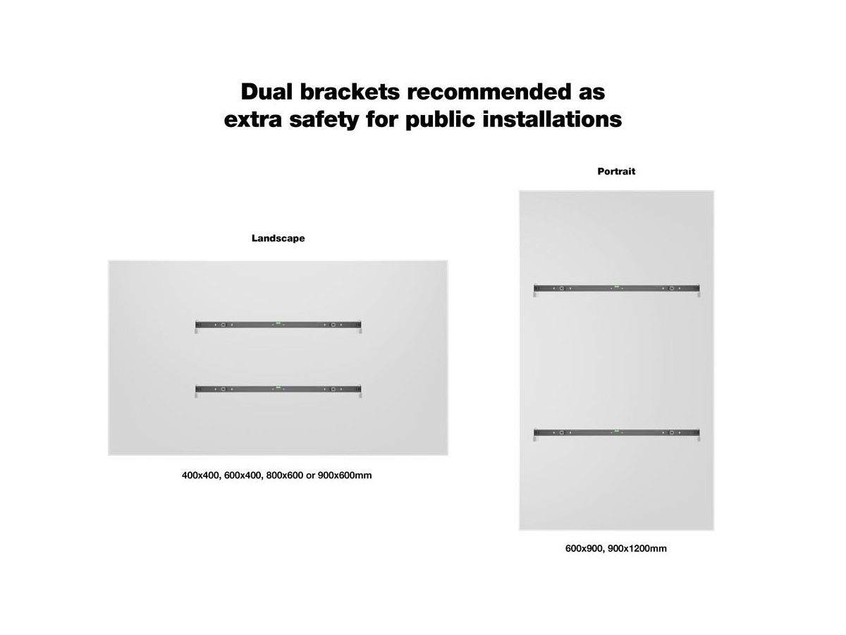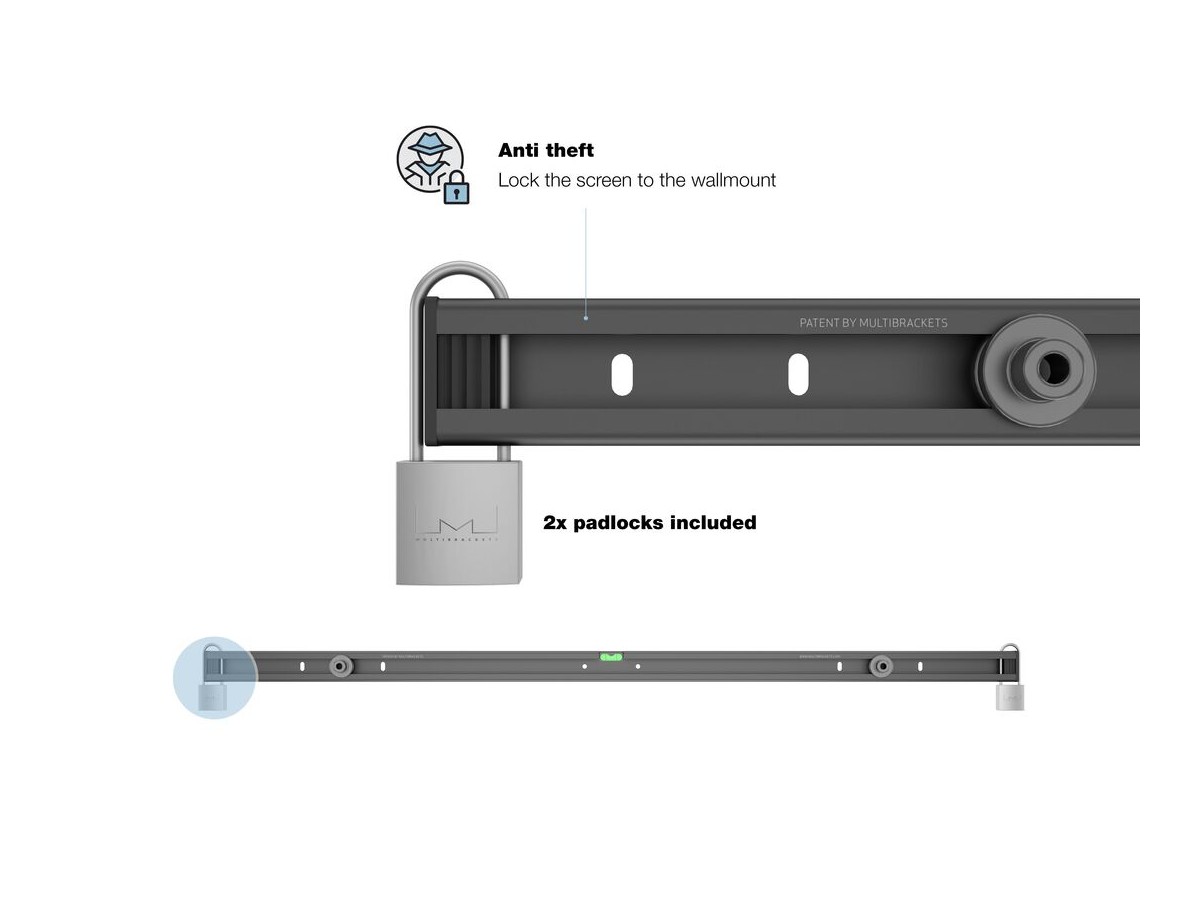 Product code:M Universal Public Wallmount Black Large - Wall mount for displays - screen size mounting: Portrait: 65-85" or Landscape: 55-75" – Padlocks included - black