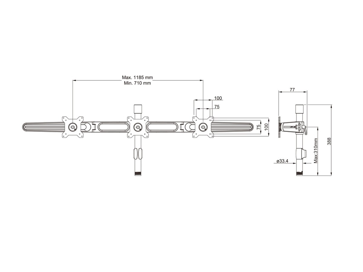 Product code:Multibrackets M VESA Desktopmount Triple Arm Expansion Kit - Mounting component ( three-screen mounting arm ) for 3 LCD displays - black - screen size: 15" - 24"