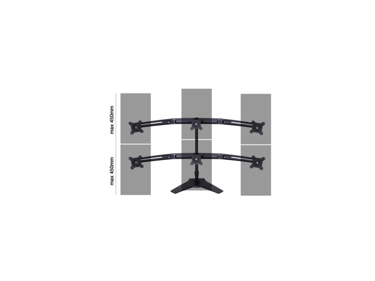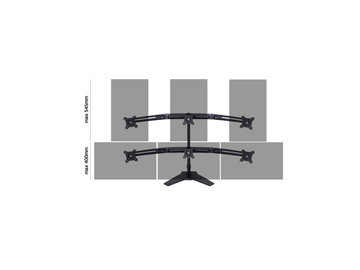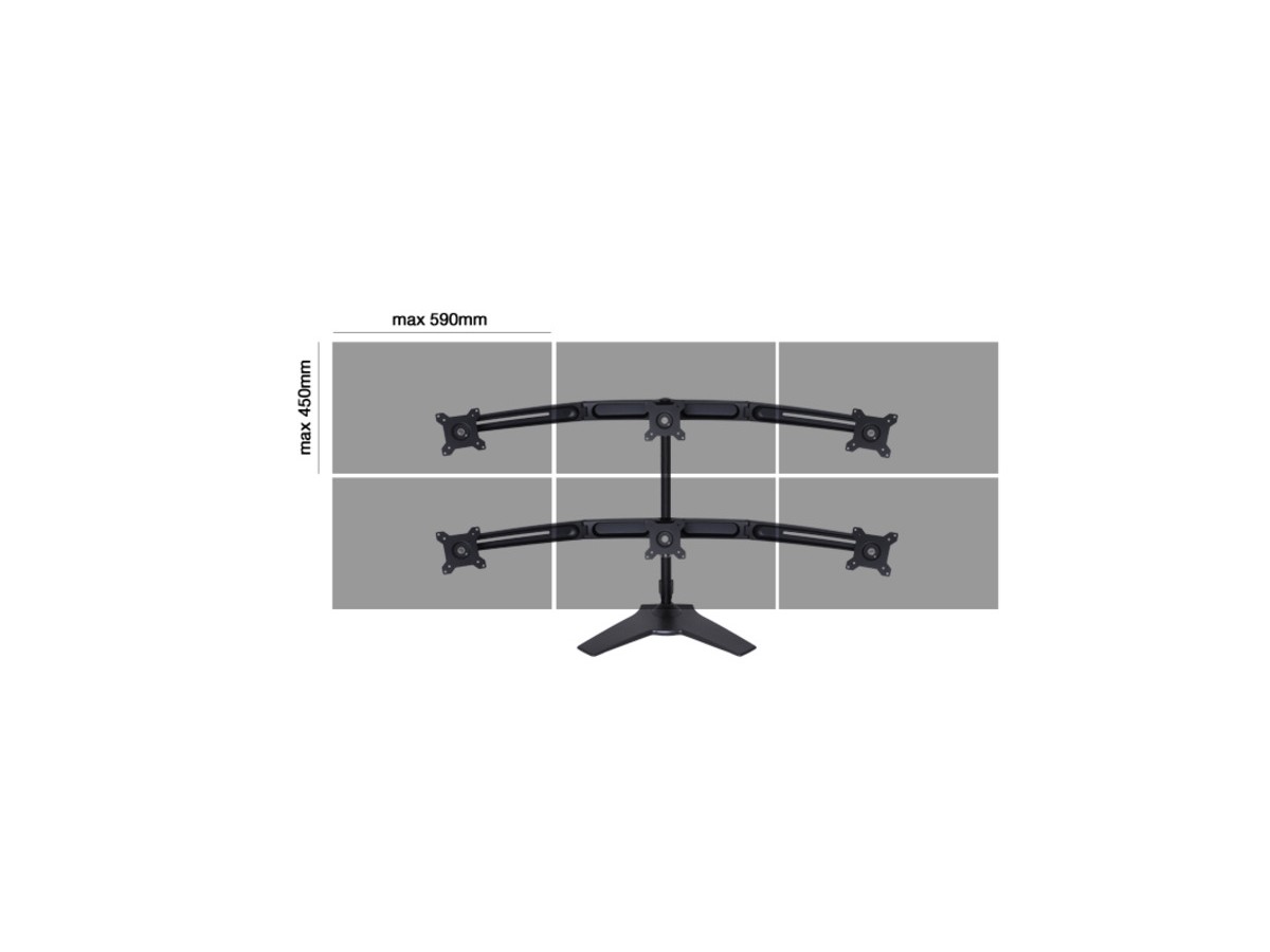 This is M VESA Desktopmount Triple Stand Expansion Kit. A heavy duty triple monitor expansion kit desk stand combined with the M Vesa Desktopmount Triple Stand.Extending the M VESA Desktopmount Triple Stand (sold separately) to a 6 monitor installation.