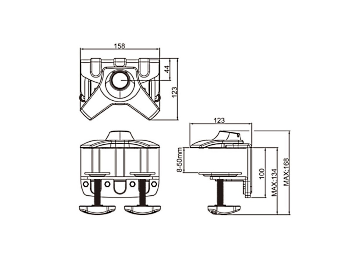 Rigid construction can hold up to 6 monitors weighing at 8 kgs each. M Desktopmount Single / Dual / Triple Stand Desk Clamp manages table widths of up to 50mm.