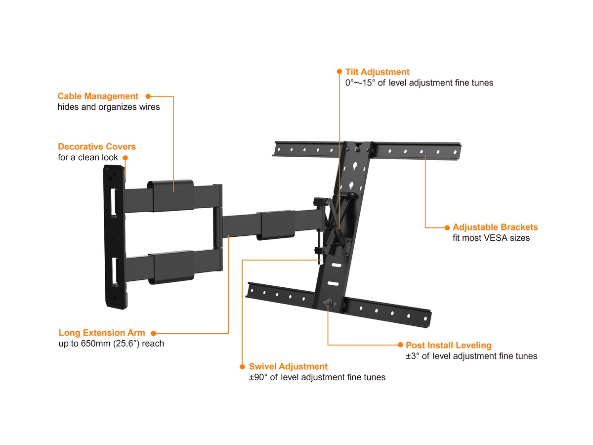 - Post install leveling. Adjustments your TV perfectly - anytime