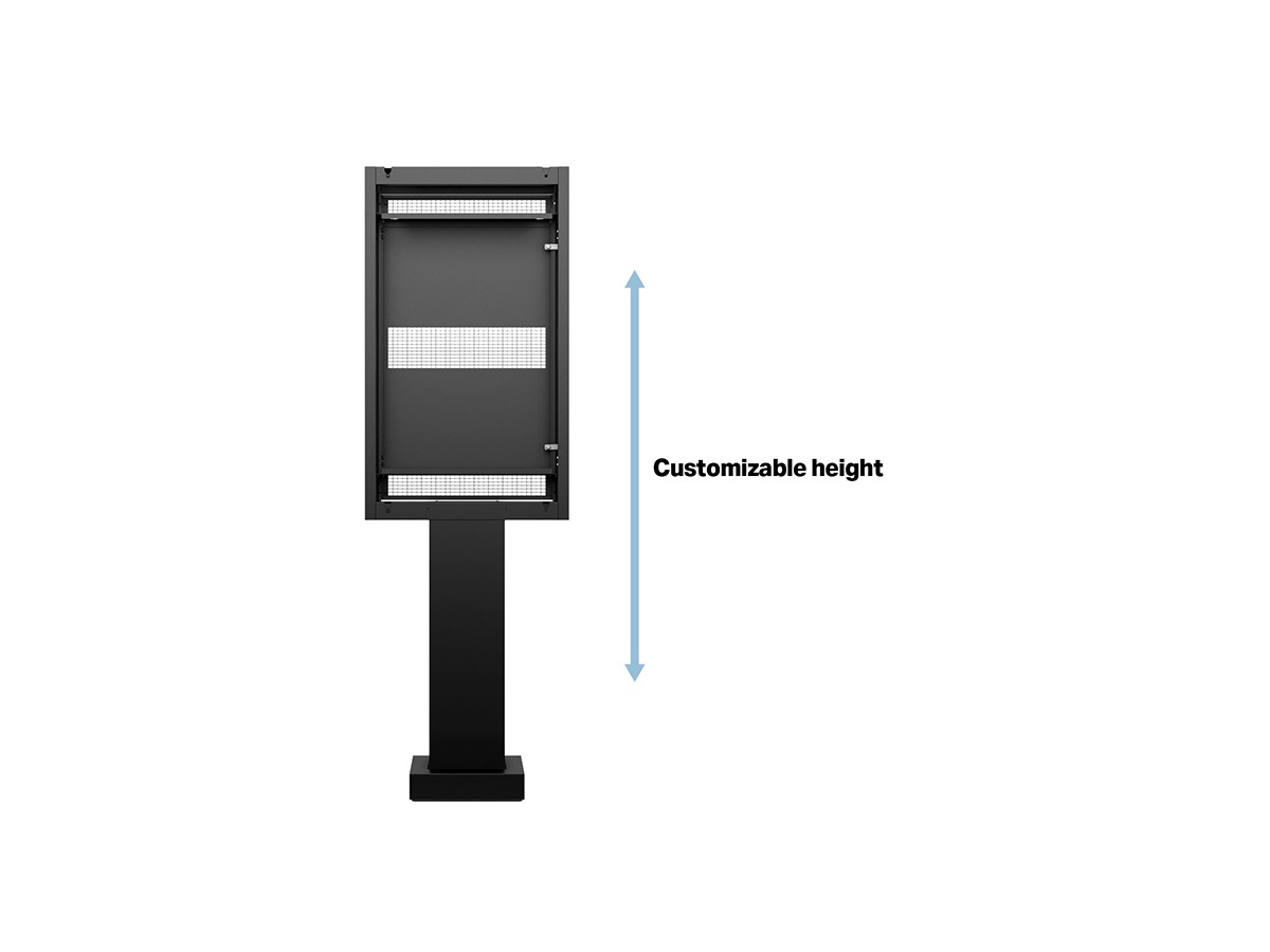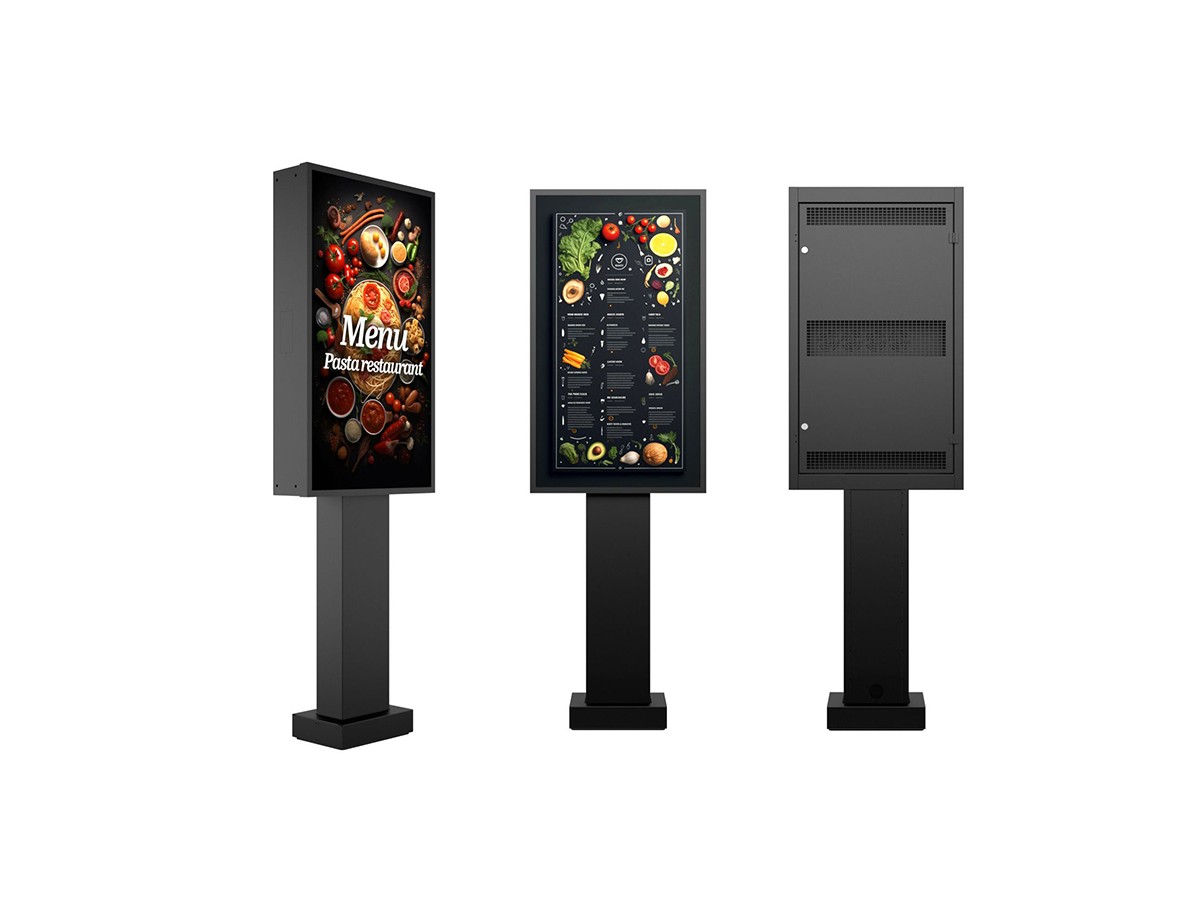 The M Totem Pro Single OH55F/B/A-S is a Single Outdoor Digital Menu Board. Configure your Exterior Digital Menu Board according to your requirements. Modular based, mount one, two or three displays on the kiosk base and use the embedded media player or a separate media player, router or hub. Multibrackets Totem outdoor is ready to support any type of configuration.