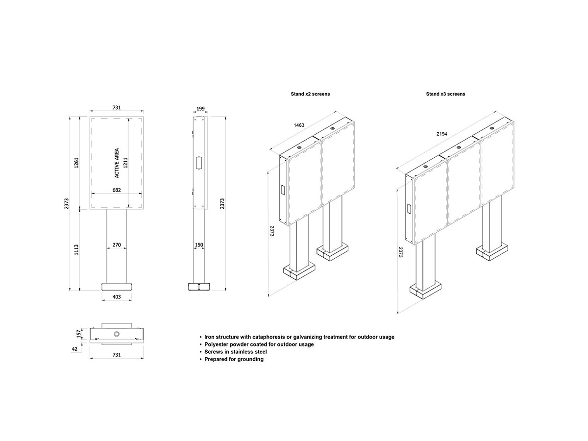 Product code:M Totem Pro Single OH55F/B/A-S - Totem for Samsung OH55F/B/A-S – portrait - screen size: 55"- max load: 63kg - VESA: 560x1186 mm - black – Outdoor 100% anti corrosion - anti theft