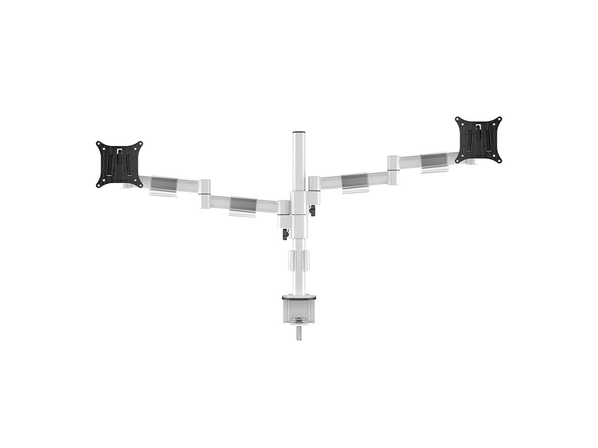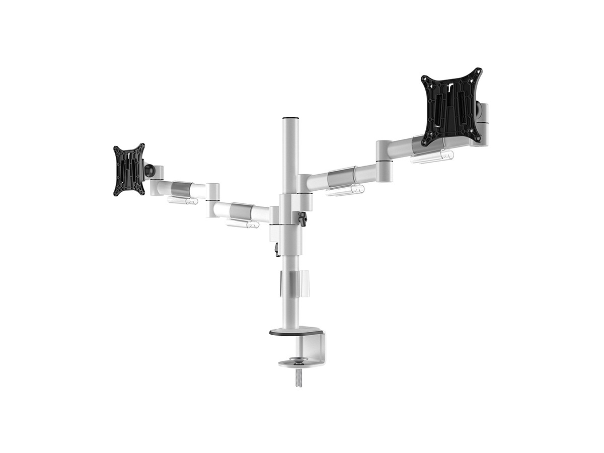 The M VESA Deskmount Officeline Dual 2 White is your new office partner giving great flexibility and ease of adjustment. The M VESA Deskmount Officeline Dual 2 White works with almost all LCD screens on the market supporting VESA standards of 75/100mm holding screens weight up to 8 kg each.