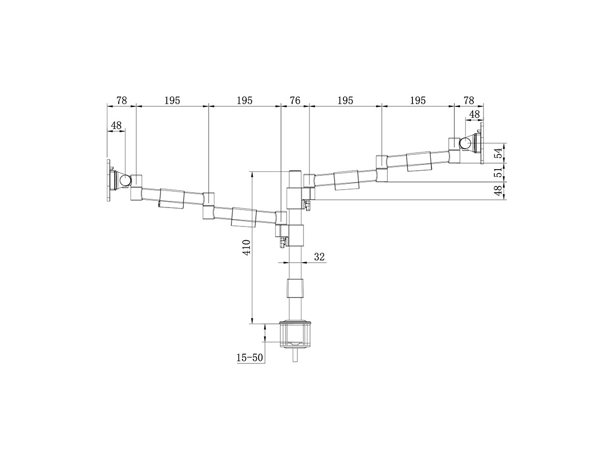 | Adjustable height from table top to VESA plate center: | 0 - 410mm |